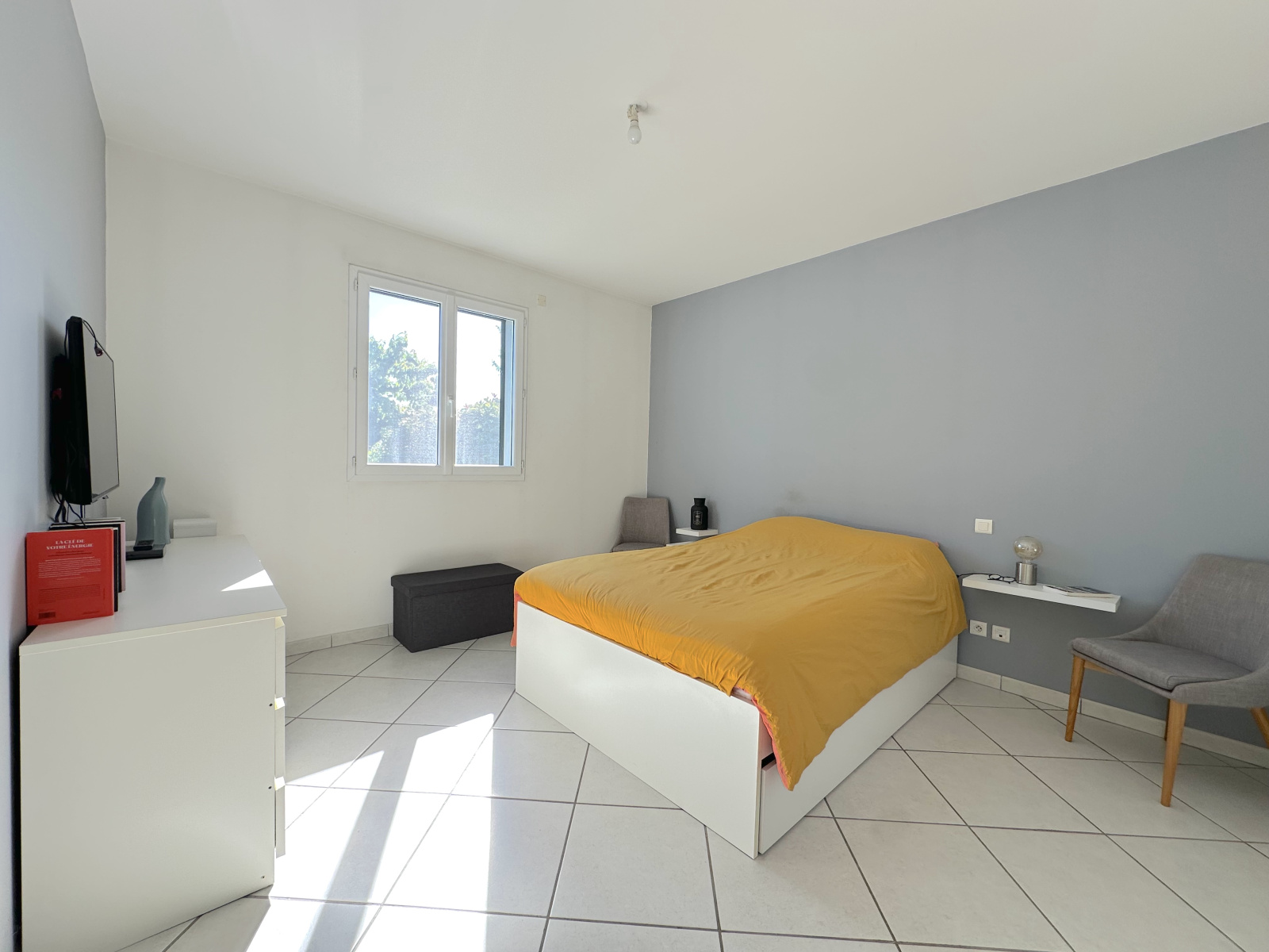 Côté nuit, trois grandes chambres accueillent la famille : deux disposent de rangements intégrés, et chacune offre de beaux volumes (jusqu’à 15,5m²). La salle d’eau, moderne et fonctionnelle, dispose d’une double vasque, d’une douche, d’un WC, et d’un sèche-serviettes. Un second WC indépendant avec lave-mains complète l’agencement.