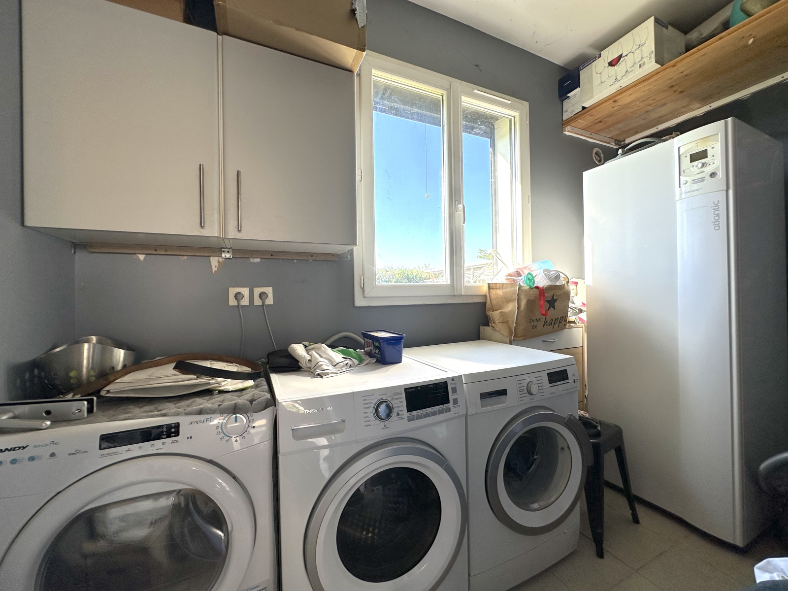 Côté annexes, un premier garage isolé d’environ 20m² est accessible directement depuis la maison, donne accès à une buanderie attenante. Un second garage, également isolé, développe plus de 39m² et intègre un espace clos, idéal pour envisager l’installation d’une salle d’eau avec WC. À cela s’ajoute à l’extérieur un local technique d’environ 6,2m², pratique pour l’entretien de la piscine ou du jardin.
