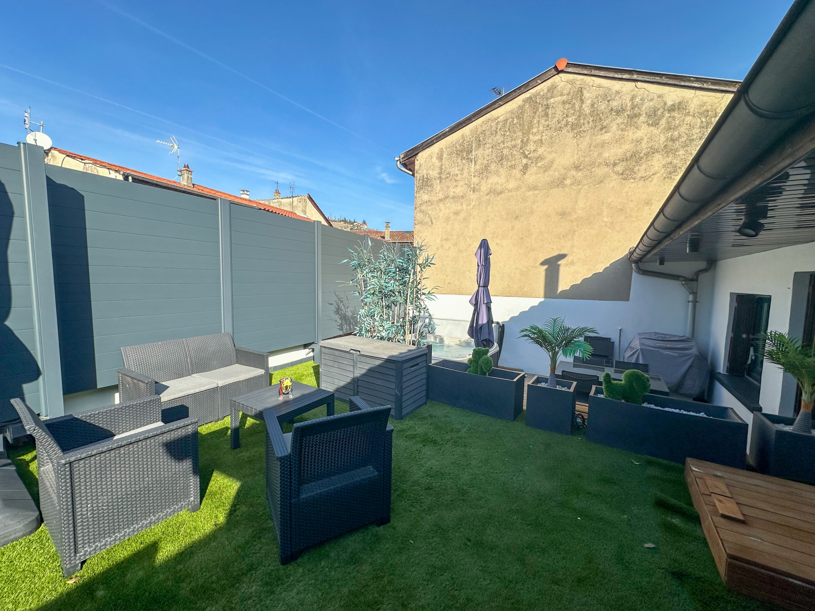 Dès l'entrée, vous serez accueilli par une cuisine entièrement équipée d'environ 11,15m2, ouverte sur un lumineux salon-séjour de plus de 31m2, donnant accès à une terrasse de 50m2 avec spa, idéale pour recevoir et se détendre en toute intimité. Une salle de bains de 4m2 avec baignoire et miroir chauffant, un WC séparé et une buanderie d'environ 2,4m2 viennent compléter ce bien. Côté nuit, 3 chambres avec rangements comprises entre 11,6 et 13,2m2 pour se ressourcer.
