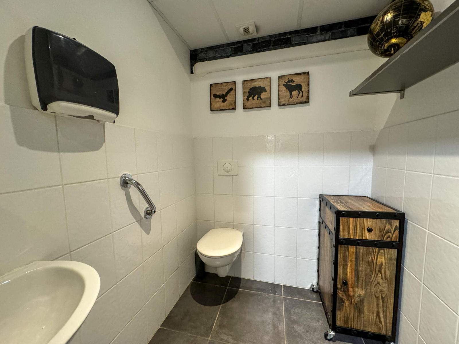 L'espace est composé d'un coin accueil, du salon, d'un arrière bureau, un cuisine, une salle d'eau et un WC séparé avec lave mains.