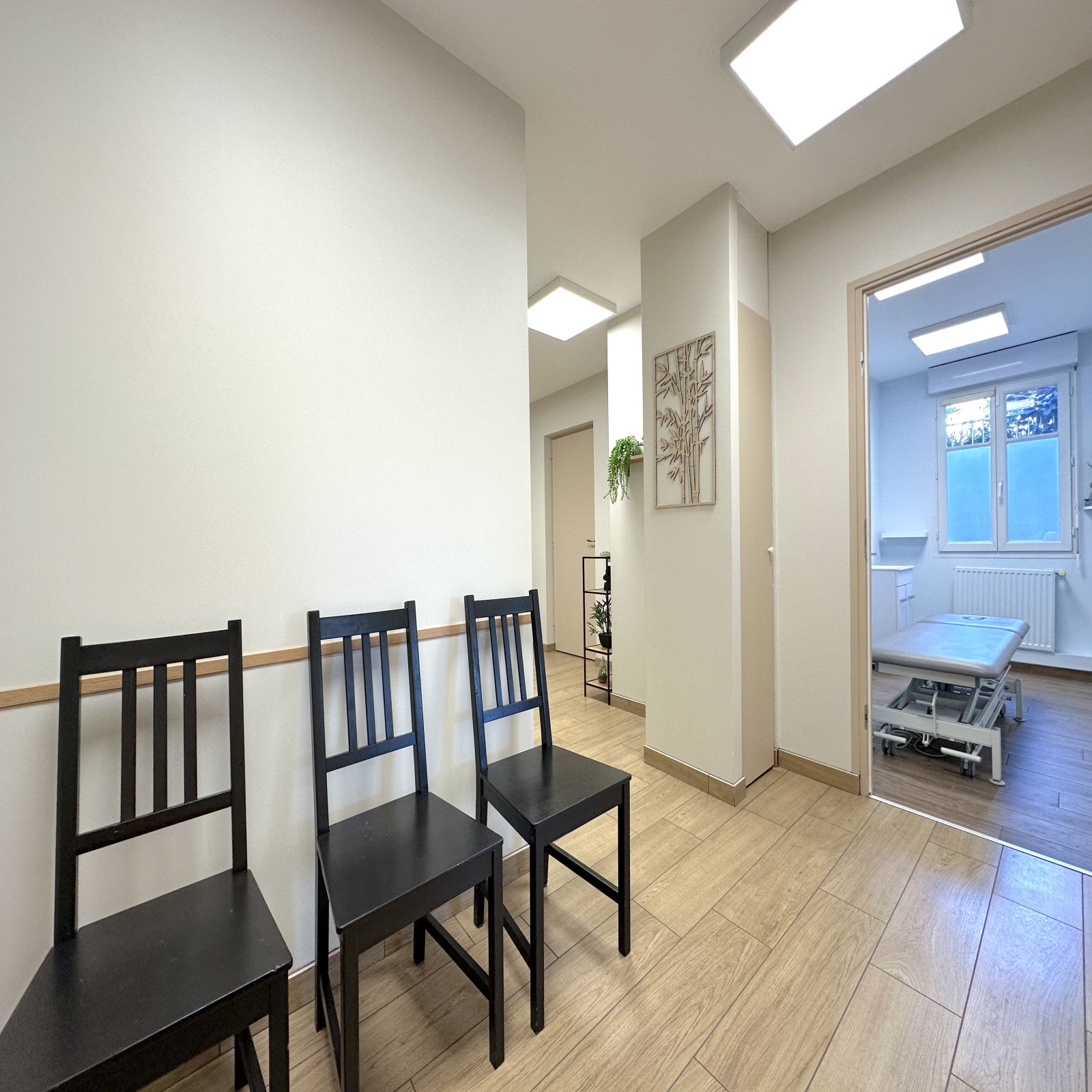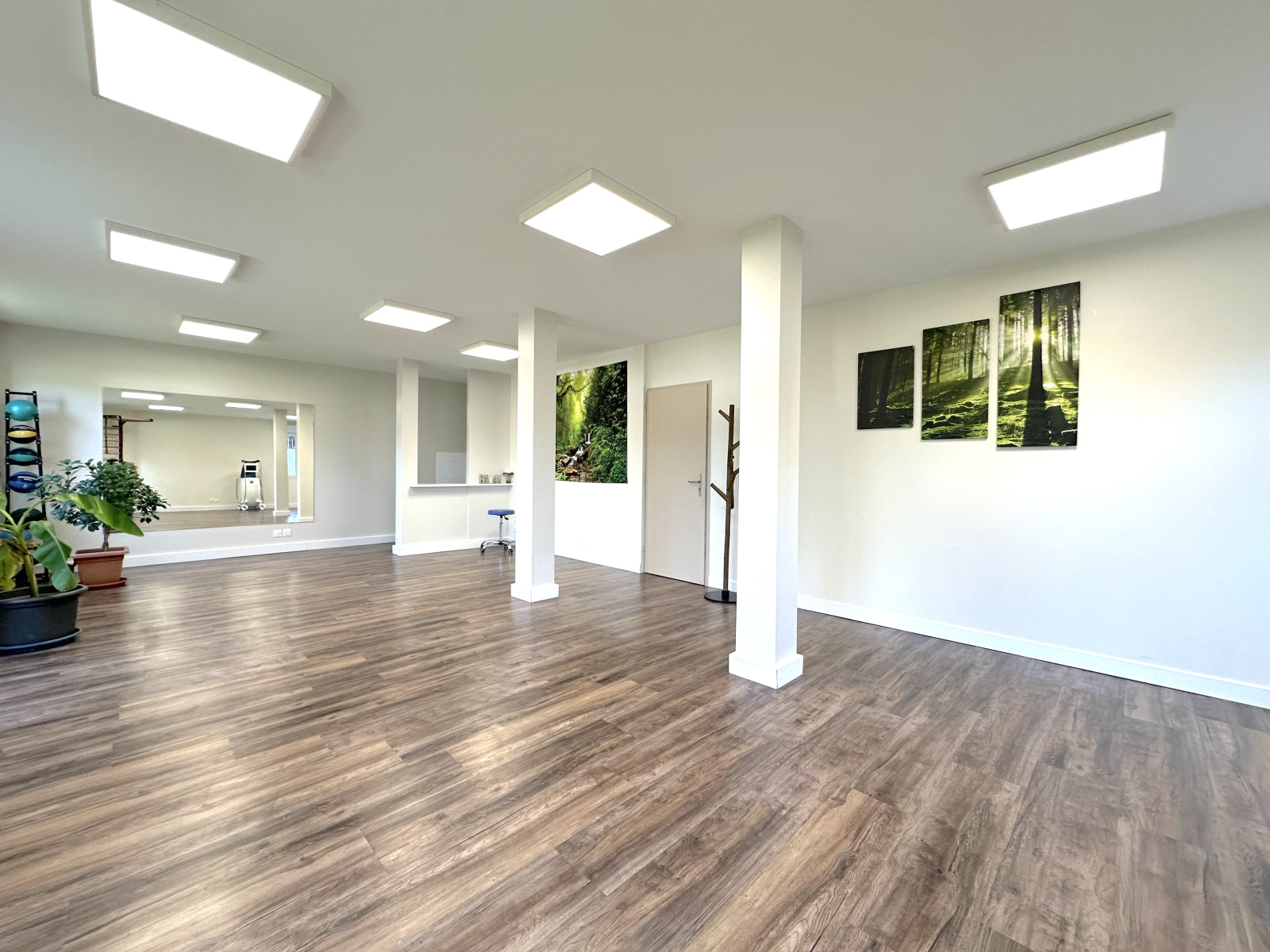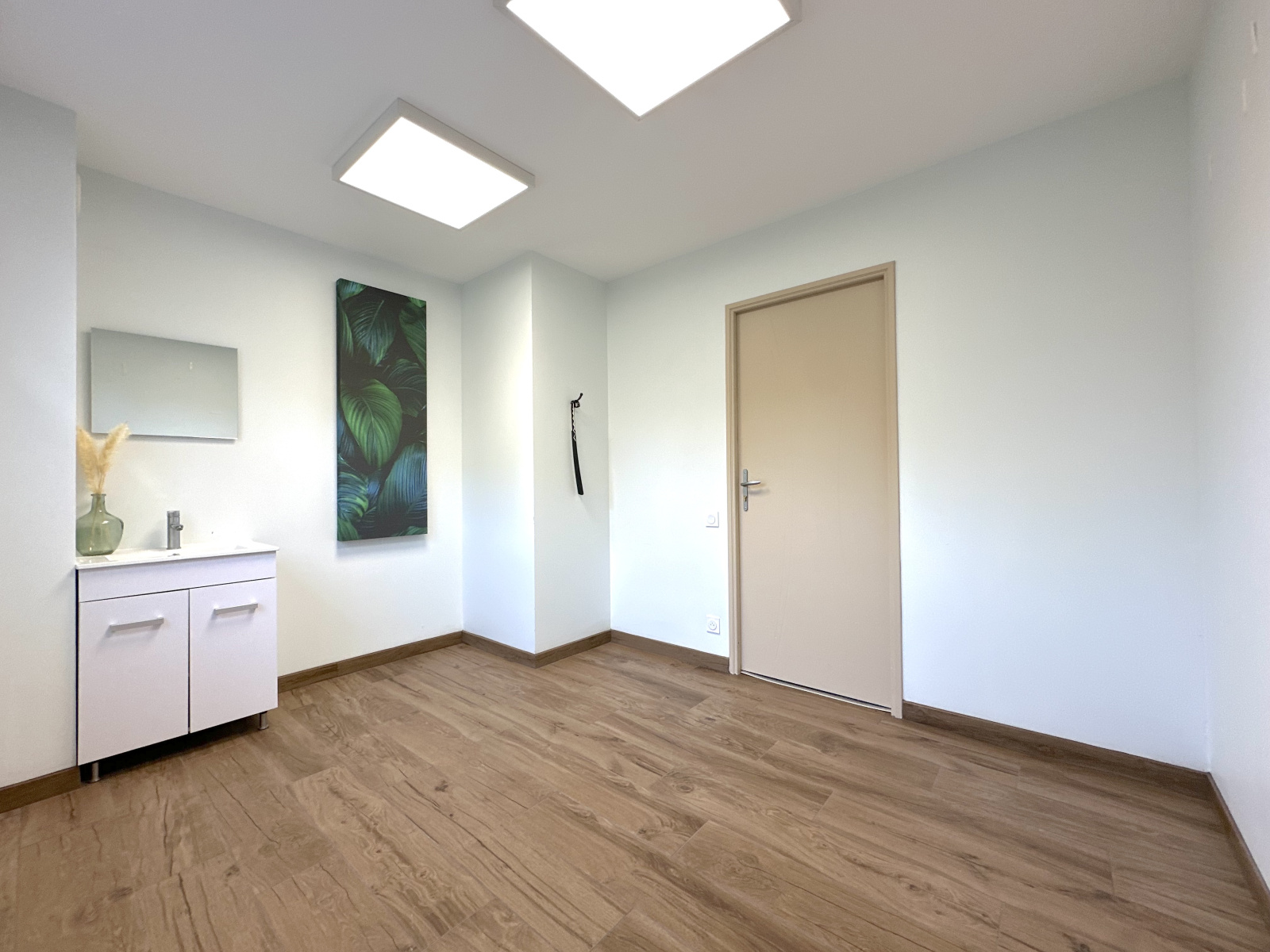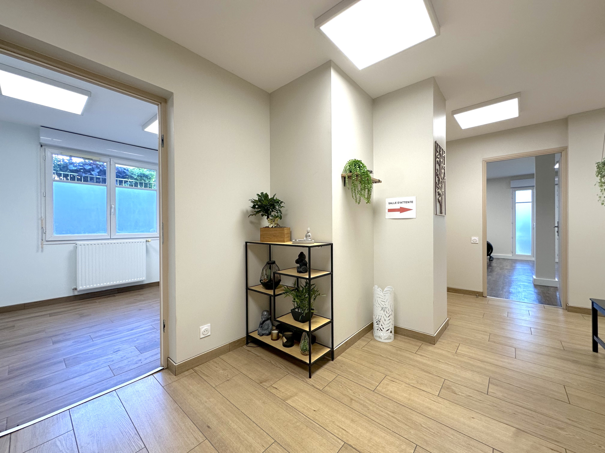 Disposant d'une grande salle polyvalente de 49m2 avec point d'eau et accès à une terrasse privée, de deux pièces avec point d'eau chacune de 8,2 et 9,2m2 pouvant faire office de bureau ou salle de soin, d'un WC pour la clientèle, d'un second WC pour le personnel et d'une salle de pause avec rangement de plus de 10m2. Un vaste dégagement à l'entrée pouvant servir de salle d'attente pour la clientèle / patientèle vient compléter les volumes.