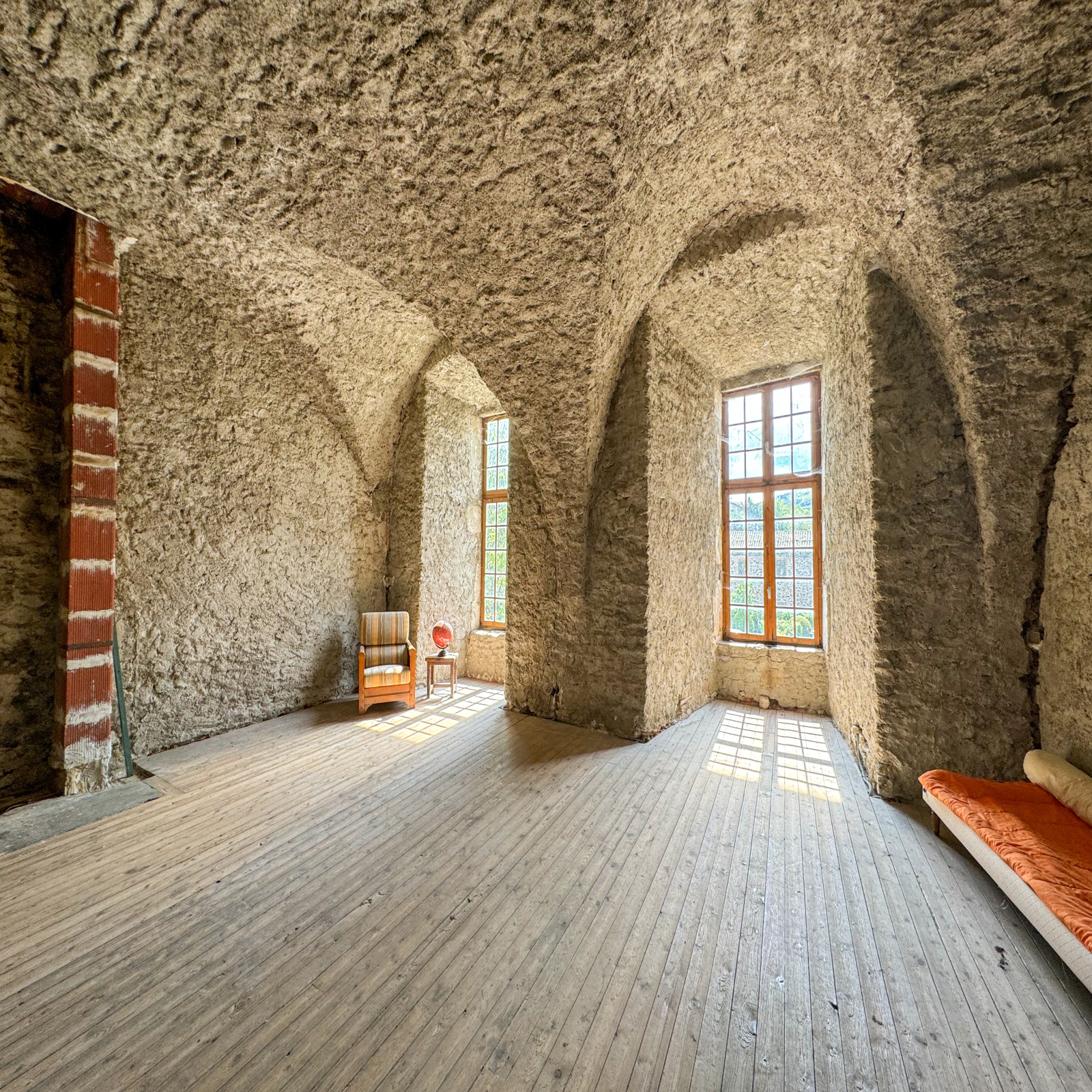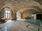 Une impressionnante salle avec voutes d'environ 60m2 offre un potentiel pour créer un espace de vie unique, adapté à vos besoins.