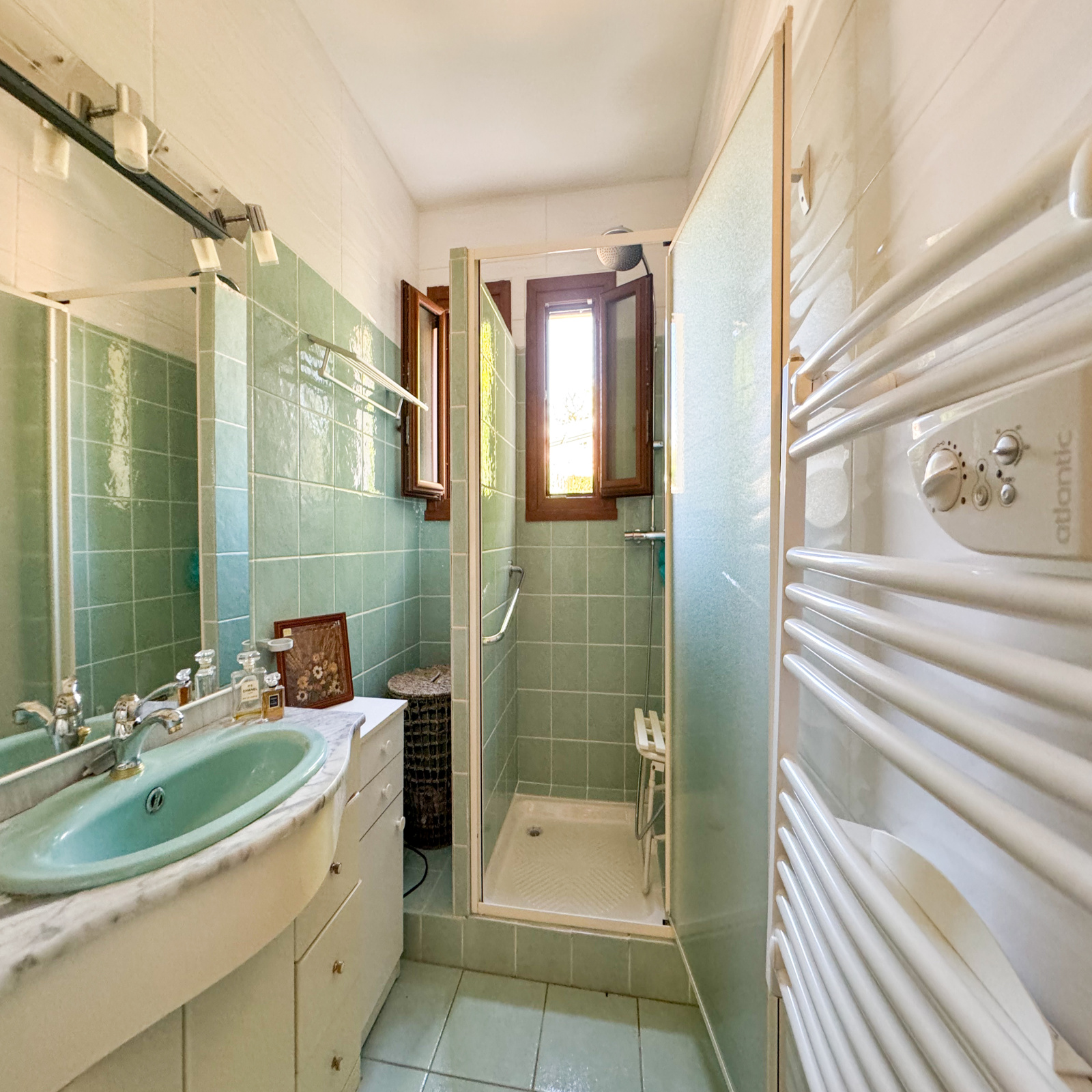Côté nuit, vous trouverez trois chambres, de 12,66 m² à 14,32 m², dont deux équipées de rangements intégrés. La salle d’eau est équipée d’un sèche-serviettes, d’une douche, d’une vasque et de fenêtres, et le WC séparé dispose d’un lave-mains, d'une fenêtre et d'une trappe pour accéder aux combles.