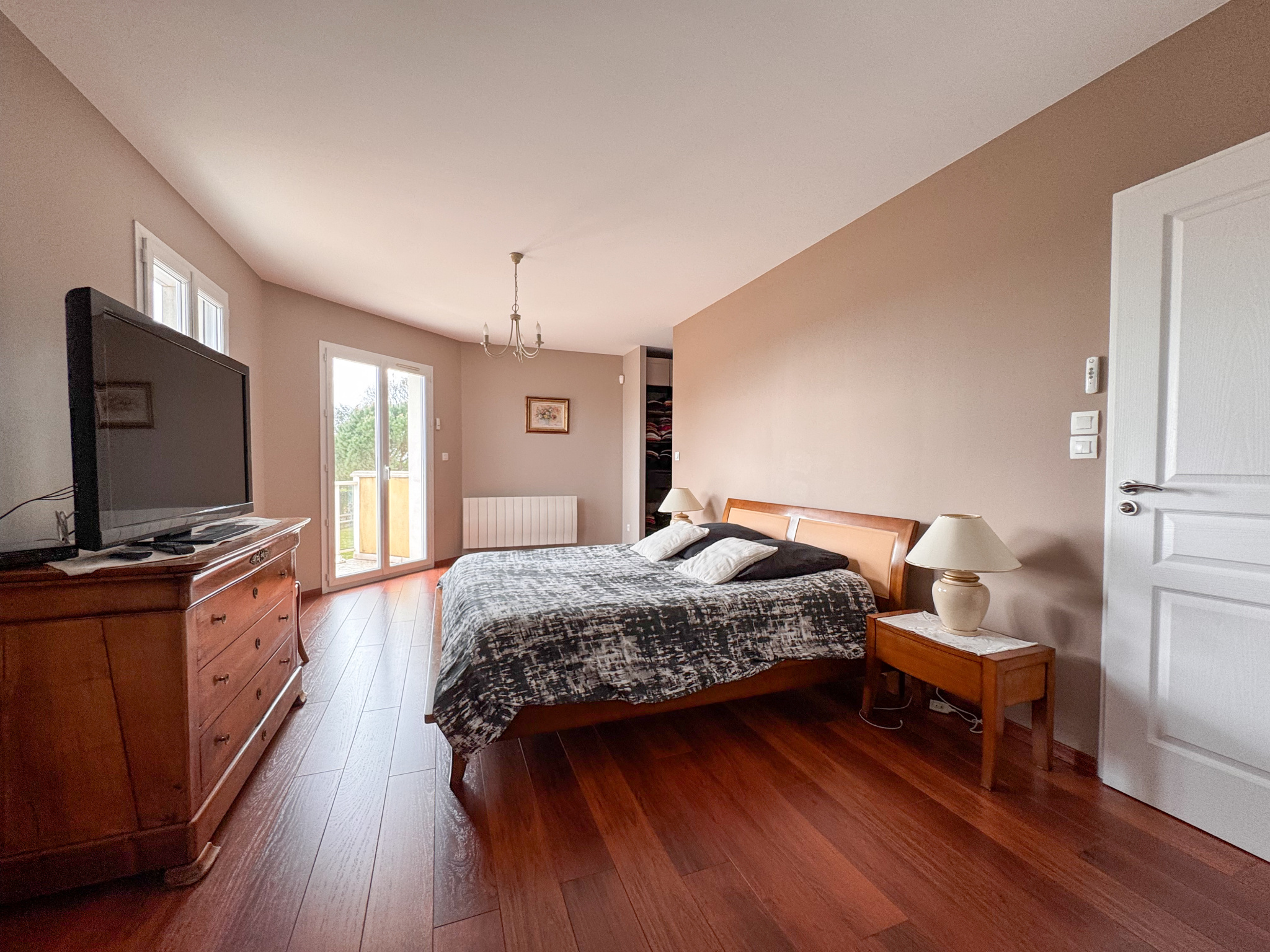 Le rez-de-chaussée accueille un espace nuit particulièrement généreux comprenant 5 chambres, dont certaines avec rangements intégrés, ainsi qu’une salle de bains complète aux prestations soignées, un WC indépendant et une buanderie/cellier fonctionnels.
