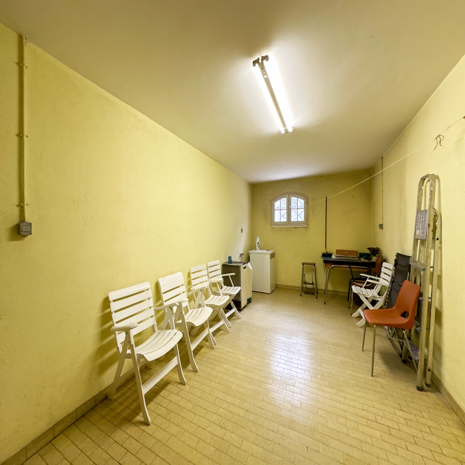 Le sous-sol, accessible depuis l’intérieur et l'extérieur, comprend un garage d'environ 45,4 m² avec point d’eau, une pièce pour stockage d'environ 33,6 m², une buanderie de 20,54 m², ainsi qu’une partie chauffée composée d’un hall de 10 m², d’un bureau de 19,88 m² et d’une chambre avec point d'eau et WC de 14,4 m².
