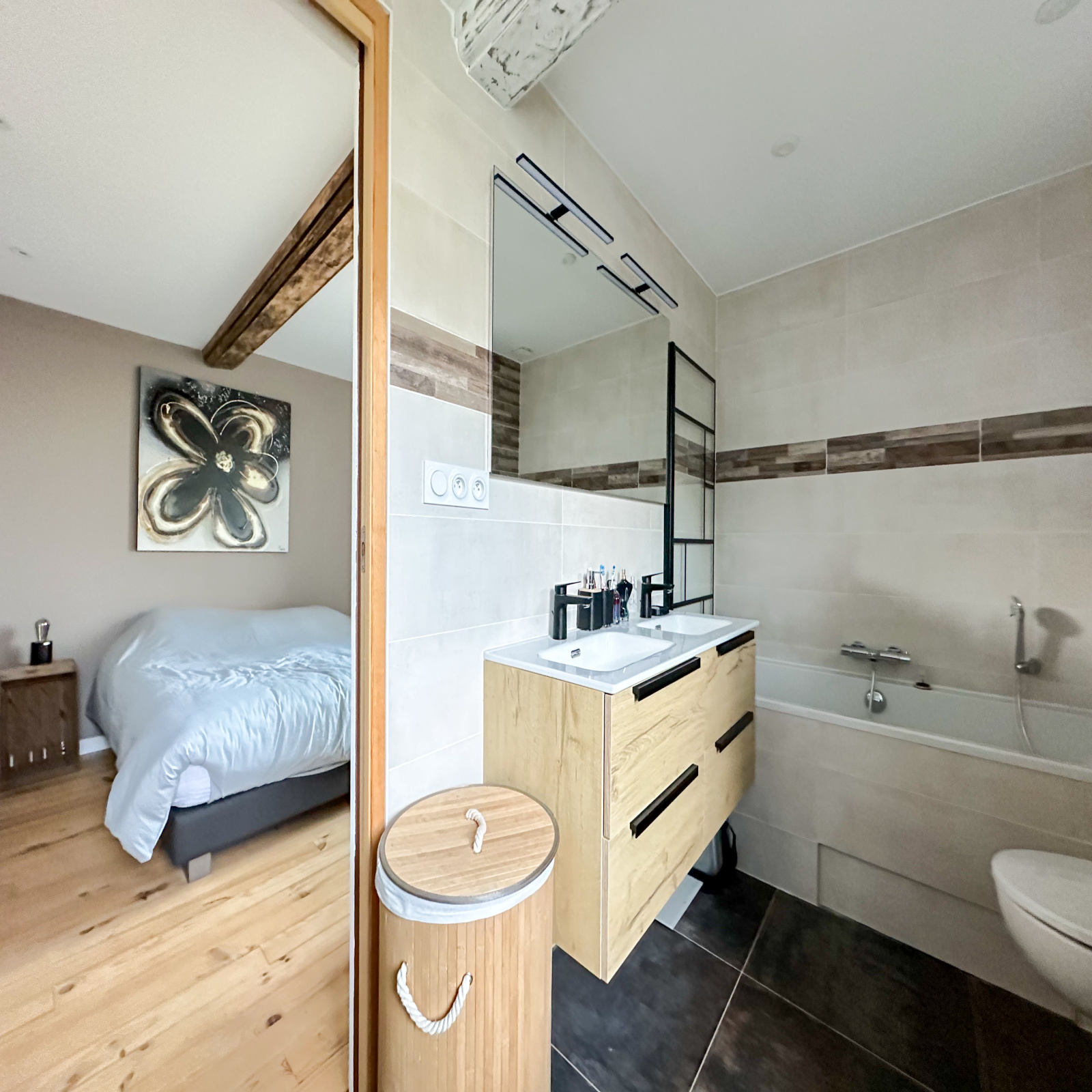 - Une salle d'eau avec WC, baignée de lumière naturelle grâce au Velux.