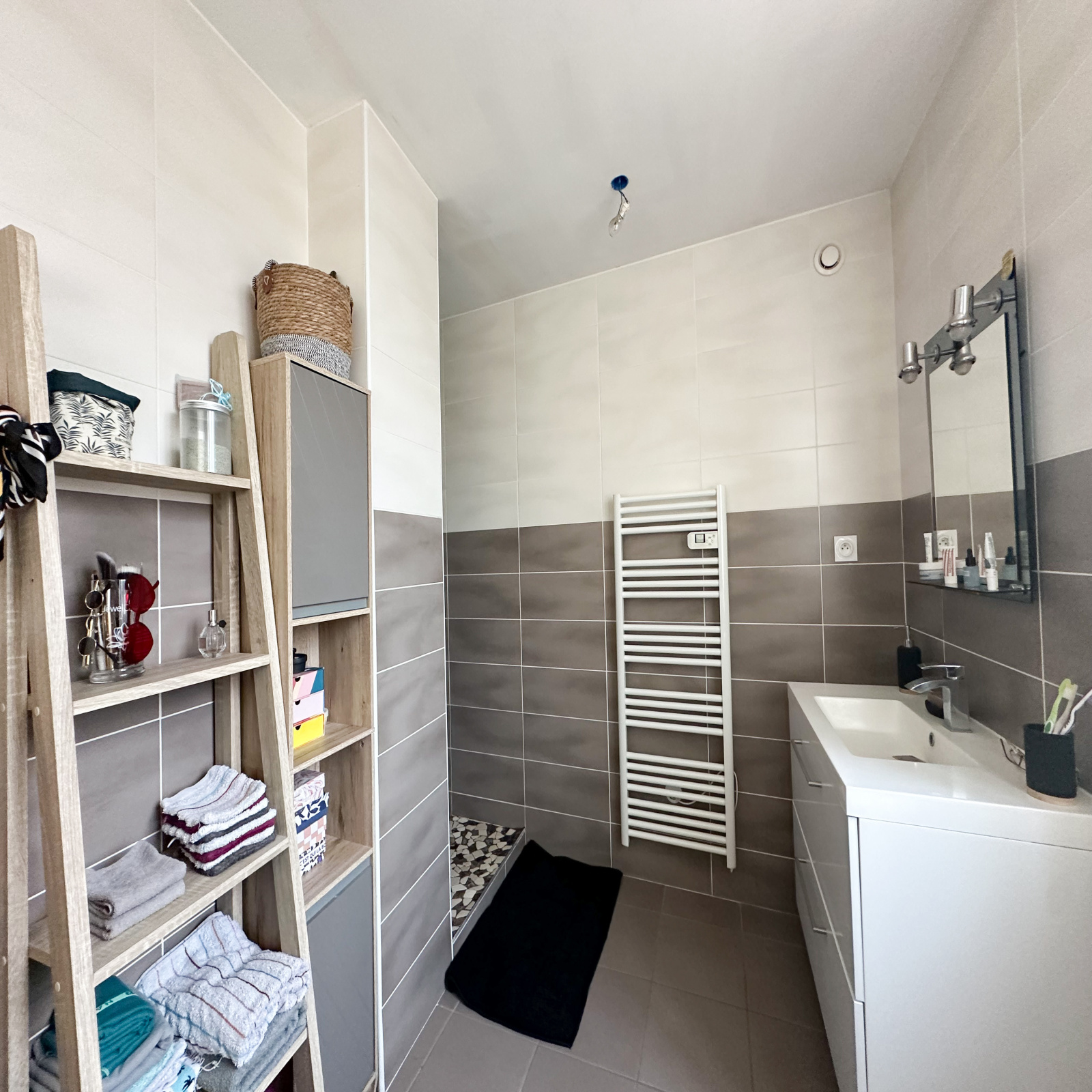 Au second niveau un salon, un wc, une salle d’eau (douche, vmc, 1 vasque, buanderie, fenêtre).