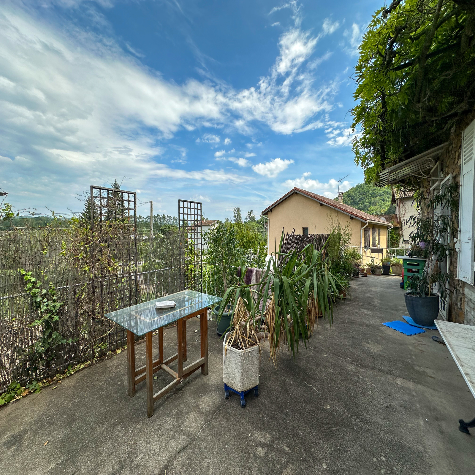 Ce logement dispose d’une cuisine séparée, d’un séjour lumineux de 20,5 m² ouvrant sur une grande terrasse de 42 m², de deux chambres, ainsi qu’une salle d’eau avec WC. Vous bénéficierez également d’un balcon, d’un sous-sol complet de 72 m², d’une cave de 21 m² sous la terrasse, d’un garage de 32,3 m² et d’une terrasse couverte.