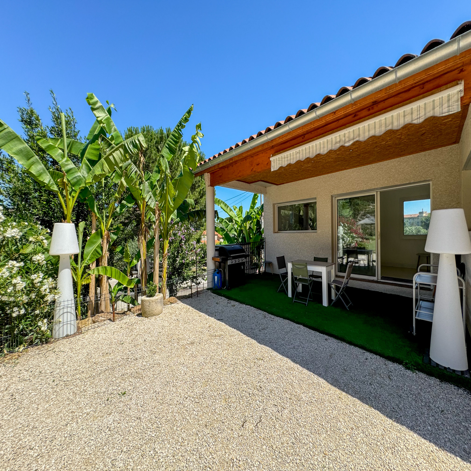 L'ensemble est implanté sur une parcelle d'environ 472 m2, clôturée et arborée.
