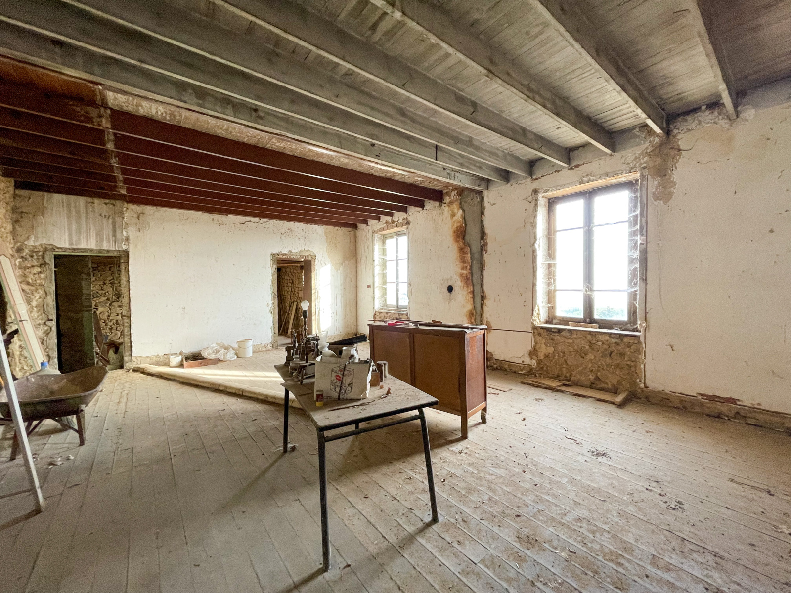 A l’étage 3 espaces en plateau de 25,70, 18, et 49m2 à aménager, pouvant donner accès à une terrasse d'environ 45m2. Au dernier niveau 2 espaces supplémentaires en plateaux de 25,80m2 et 33,30m2 ainsi que des combles non aménageables pour 20m2 au sol.