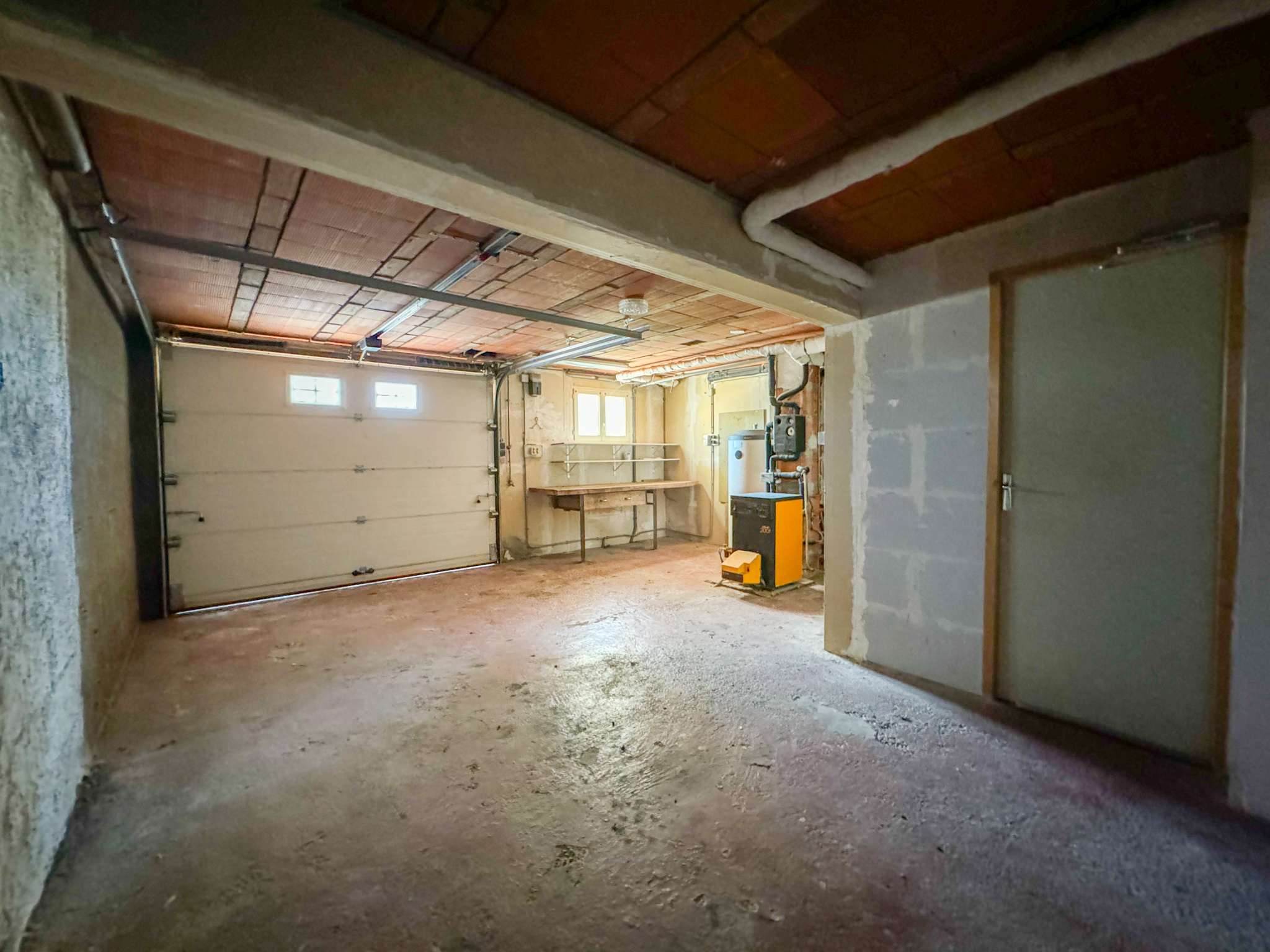 Au rez-de-chaussée, d'une vaste entrée desservant deux chambres de 11,1m2 et 10,9m2 avec rangements (pouvant également faire office de bureaux ou pièce de loisirs), une salle d’eau (avec douche, toilettes coin buanderie, et une vasque), un dégagement desservant un spacieux garage de 30,2m2 avec porte sectionnelle plafond électrique ainsi qu'une cave de 5,8m2.
