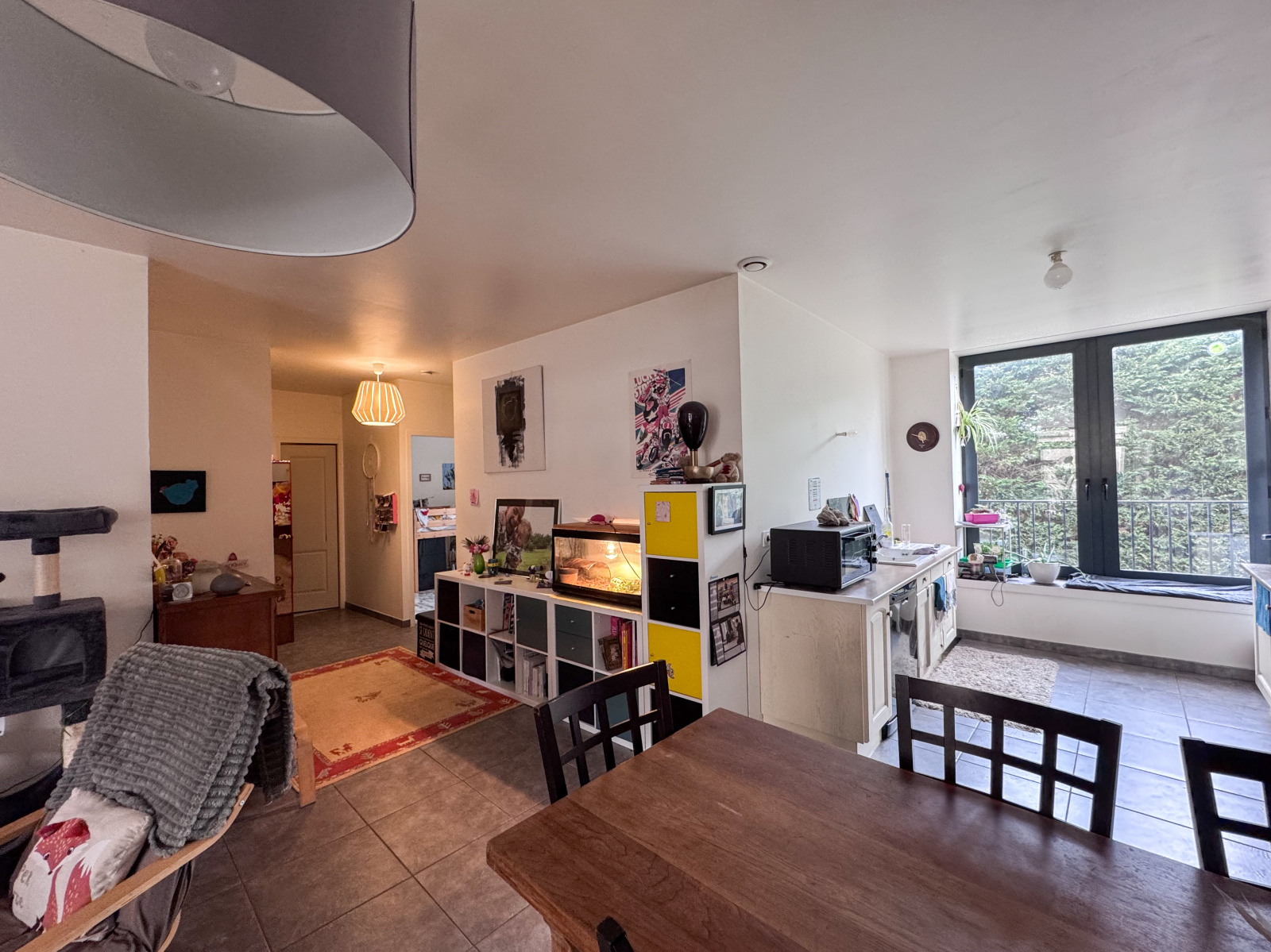 Il se compose d'une cuisine ouverte sur un salon-séjour spacieux de 49 m² avec petit extérieur donnant sur la cour commune. Une chambre confortable de 10,96 m² vous attend, ainsi qu'une de 9m2, une salle d'eau avec VMC, sèche-serviette, une vasque, et un wc séparé (vmc)
