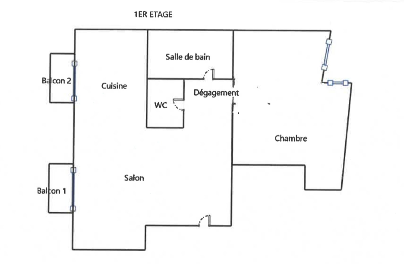 Il se compose d’une pièce de vie spacieuse d’environ 27,61 m² avec deux balconnets pratiques pour y prendre un café, une cuisine ouverte équipée (four, hotte à filtres, VMC) avec emplacements et branchements prévus pour lave-vaisselle et machine à laver.