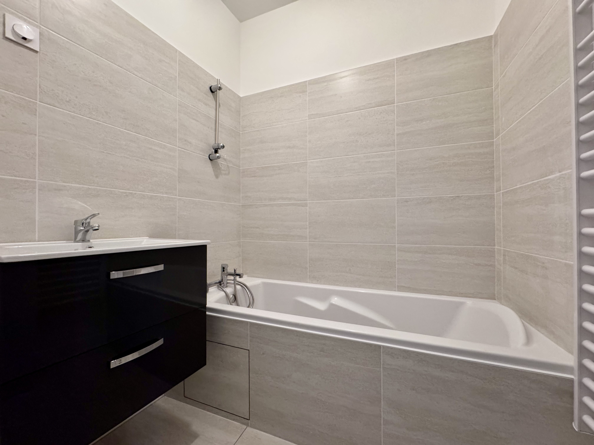 Une salle de bains armonieusement aménagée d’environ 3,01 m² équipée d’un sèche-serviettes et d’une VMC