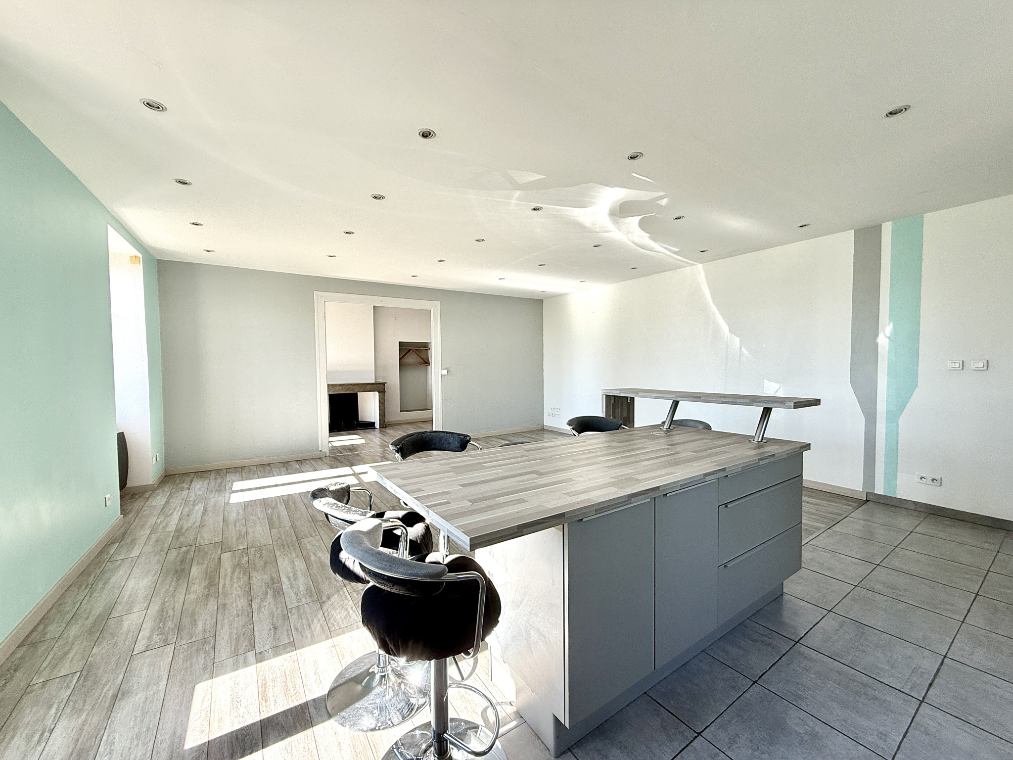 Le volume habitable, situé au premier étage et accessible par un accès indépendant, présente une surface d'environ 103 m2, vous accueillant par un hall d'entrée donnant sur une vaste et lumineuse pièce de vie ouverte sur une cuisine entièrement meublée et équipée d'un ilot central des plus fonctionnels !