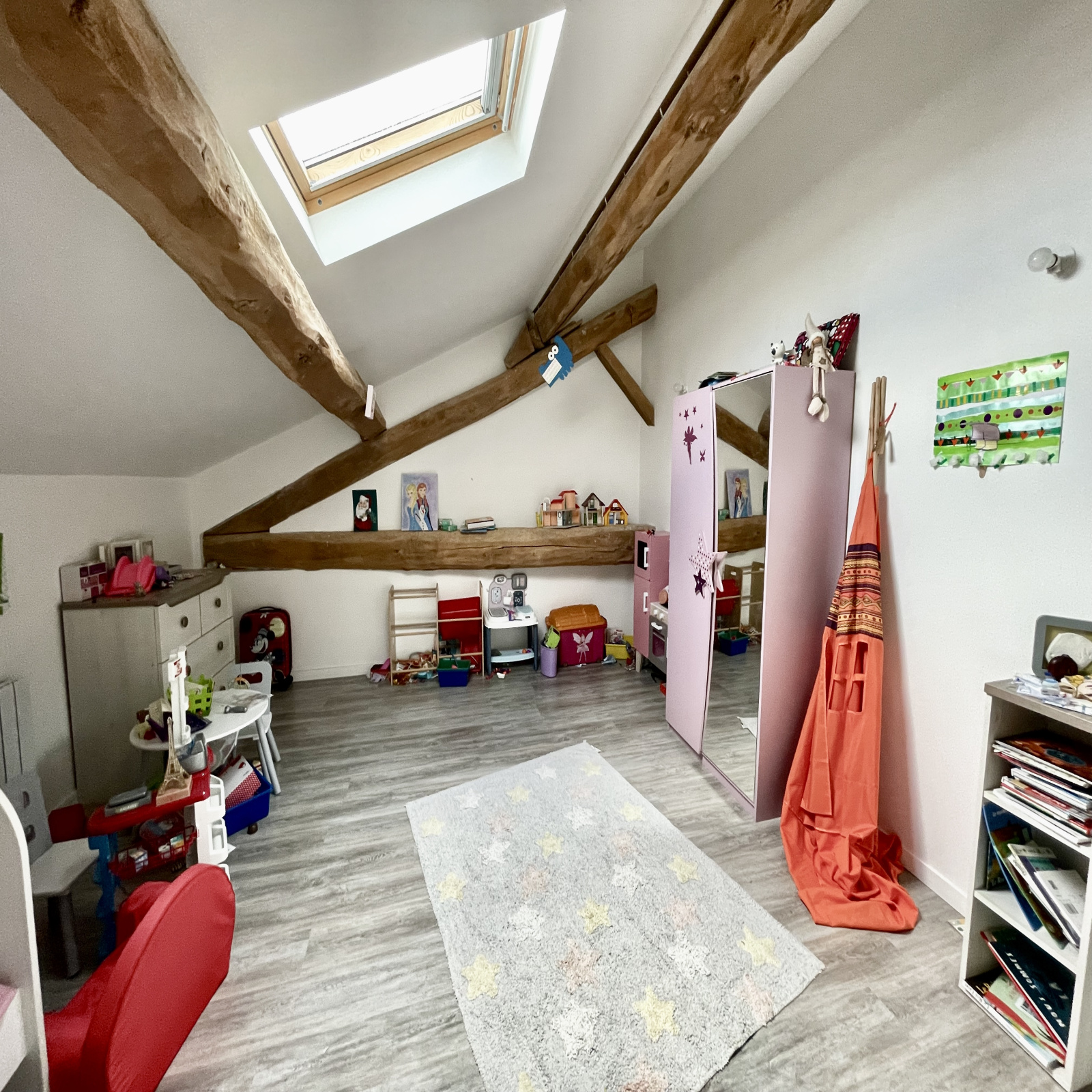 A l'étage une première chambre d'environ 16 m2 avec rangements, une salle d'eau, un wc et un bureau de 11,5 m2 avec fenêtre (pouvant faire office de 4ème chambre), au dernier niveau deux autres chambres de 15 et 21 m2 au sol.