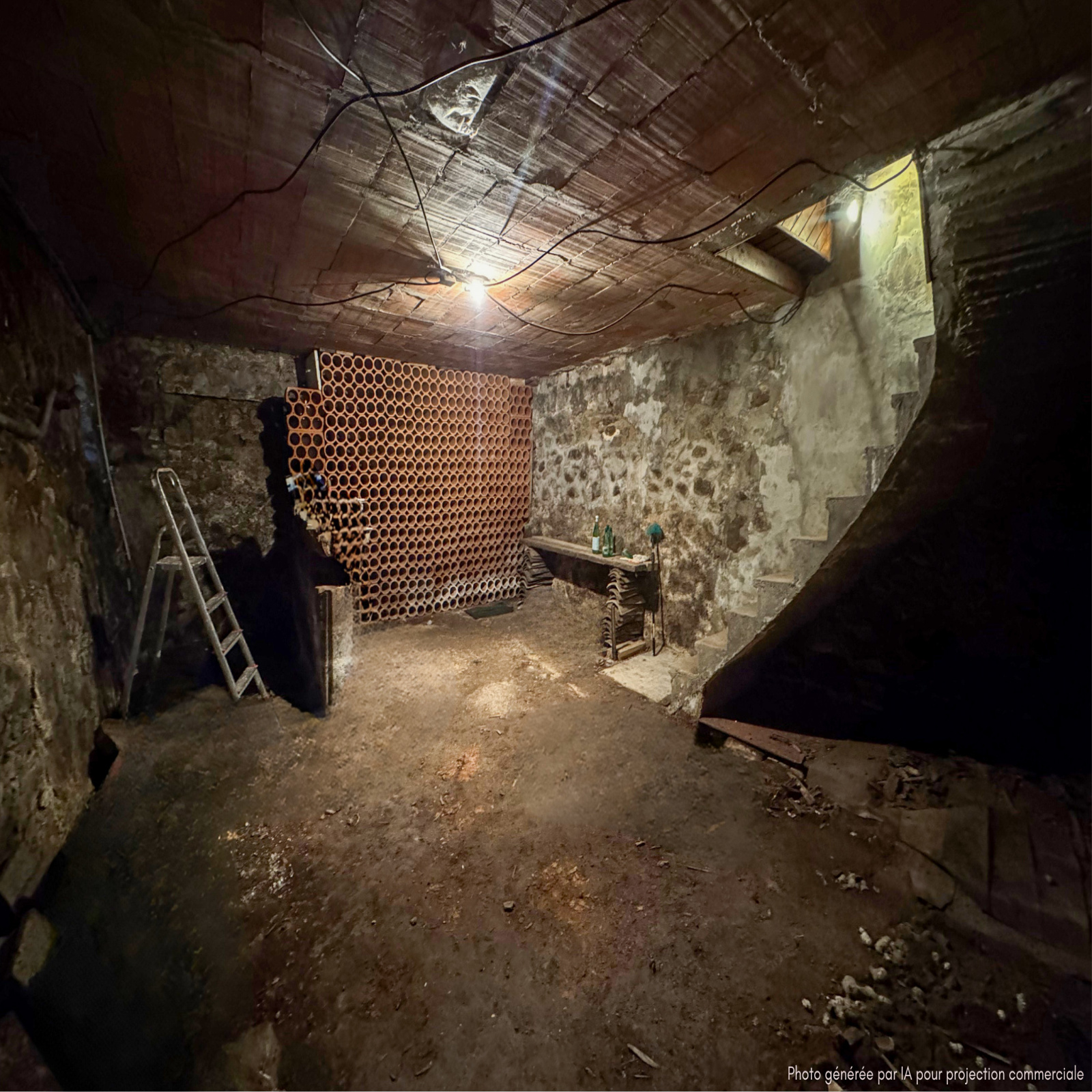 une cave de 28,7 m² (avec emplacement du compteur d’eau),
