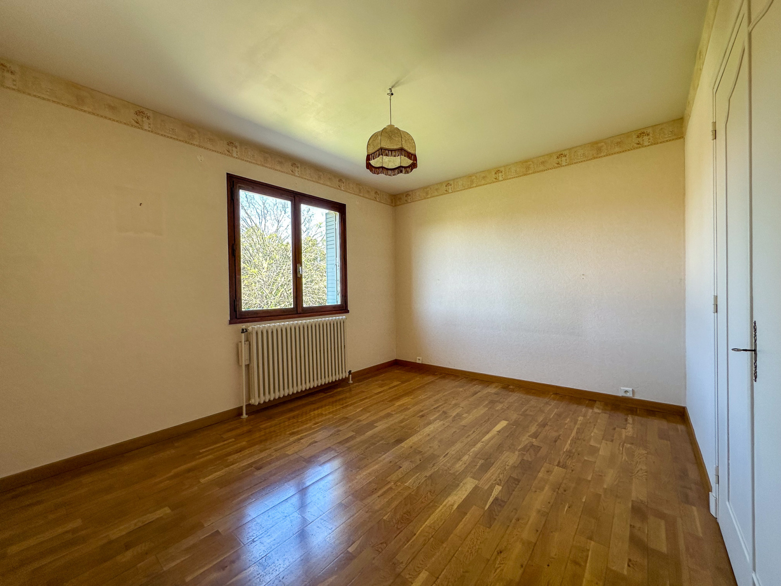 L’espace nuit se compose de deux chambres avec placards intégrés (11,50 m² et 12,59 m²), d’une salle d’eau fonctionnelle, ainsi que de toilettes séparées.