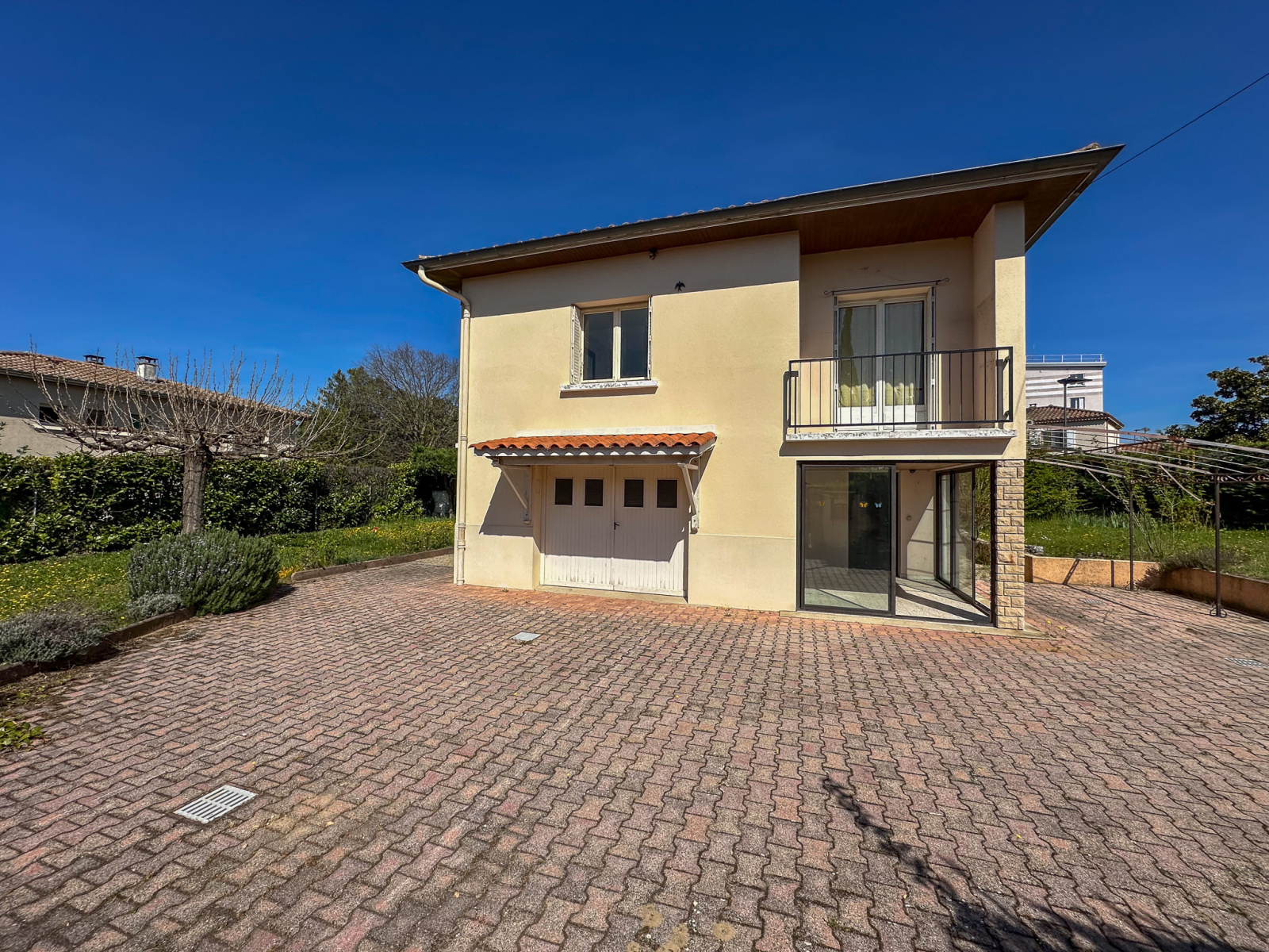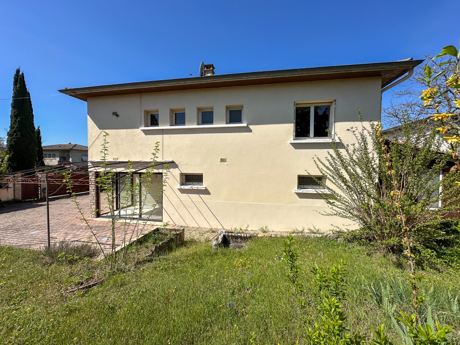 Édifiée en 1963, cette maison d’habitation développe actuellement 101 m² habitables, répartis sur deux niveaux.