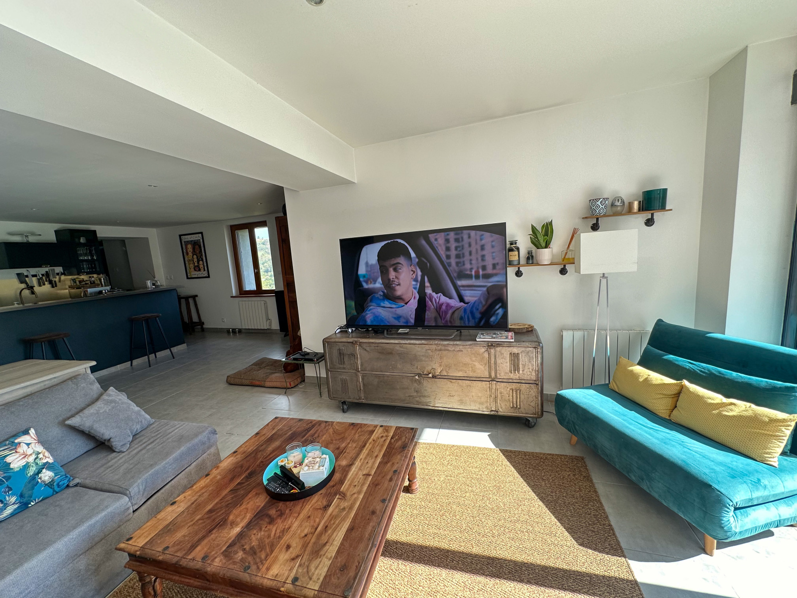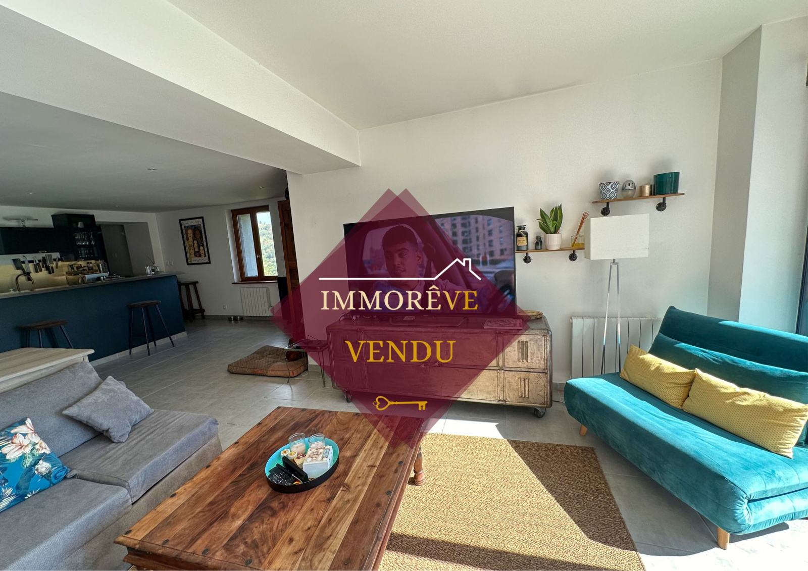 L'Agence IMMORÊVE a le plaisir de vous proposer de venir découvrir cette maison divisée en 2 logements, entièrement rénovée en 2019/2020 d’environ 103,56 m2 au sol soit 97,66 m2 carrez m2 avec jardin de 845 m2 au sein d'une copropriété de 4 lots (faibles charges ( 5 euros / an ! ) Idéalement située dans un quartier résidentiel au calme et dans un cadre campagne, ce bien saura répondre à toutes vos attentes avec ses nombreuses prestations.Ce duplex se compose au rez-de-chaussée d'un hall d’entrée , un placard, une cuisine meublée équipée ouverte sur salon-séjour de 42,5 m2 donnant accès à la spacieuse terrasse et au jardin de 845 m2 avec une vue dégagée, une chambre de plain pied de 12,4 m2, une salle de bains (VMC, espace buanderie, 2 vasques, SC) et un WC suspendu avec lave main (VMC).Au premier étage deux autres chambres de 12,5 et 10,8 m2 avec placards !Une cave de 29 m2 et 2 places de parking privatives complètent ce bien.Pas de travaux à prévoir !Chauffage : Radiateurs électriques (faible consommation) Menuiseries : Double vitrage Taxe foncière : 2000 euros / an . Si ce bien, plein de charme a su retenir votre attention, n'attendez plus, et contactez dès à présent votre agence Immorêve. Nous serons ravis de pouvoir répondre à vos questions et organiser une visite à votre convenance.