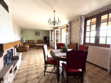 La propriété vous accueille en rez-de-chaussée depuis un hall d'entrée desservant au premier étage, un dégagement donnant accès d'une part à une belle pièce de vie disposant d'une cheminée à foyer fermé et s'ouvrant sur une terrasse d'environ 14 m2. D'autre part, une vaste cuisine aux multiples possibilités s'offrant à vous.