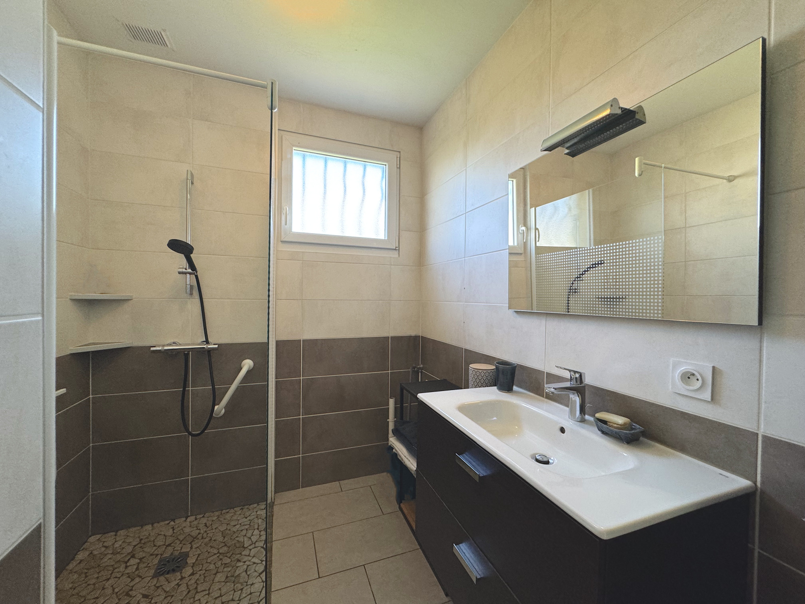 La maison dispose d'une salle d'eau moderne, équipée d’une douche à l’italienne, d’un évier simple vasque, d’un sèche-serviettes, et d’un WC séparé. Côté nuit, deux chambres spacieuses, d'environ 10,02 m² et 13,2 m², avec la possibilité d’aménager une troisième chambre, offrant de belles possibilités selon vos besoins.
