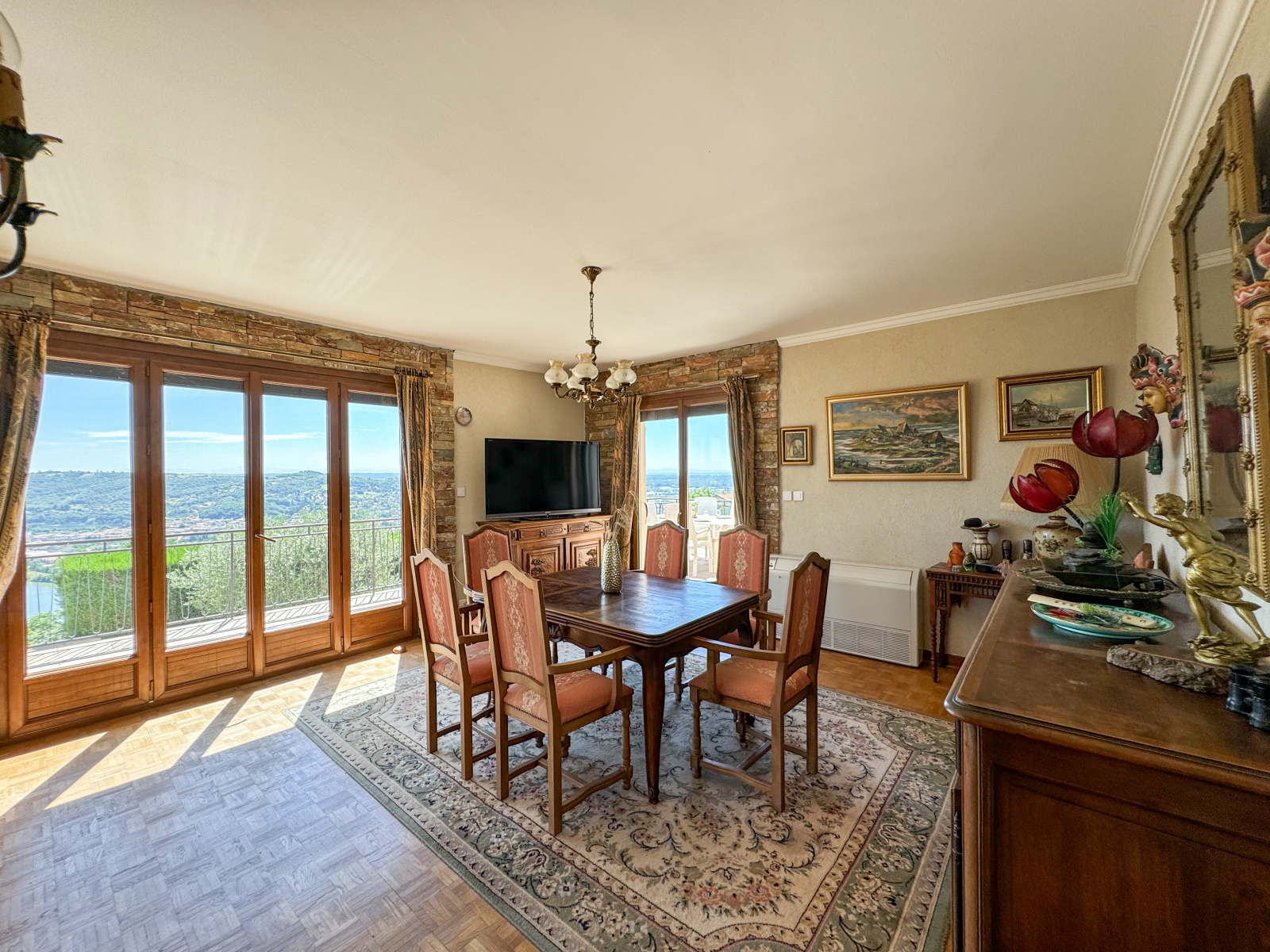 L’entrée avec rangement mène à une cuisine séparée, entièrement meublée et équipée en 2018. Cette cuisine spacieuse de 14,4 m² comprend un frigo américain, une plaque de cuisson, un four, une hotte et une table, répondant à tous vos besoins culinaires. Le salon-séjour avec cheminée s’ouvre sur une grande terrasse de 39 m² exposée à l'Est, parfaite pour profiter des matinées ensoleillées.