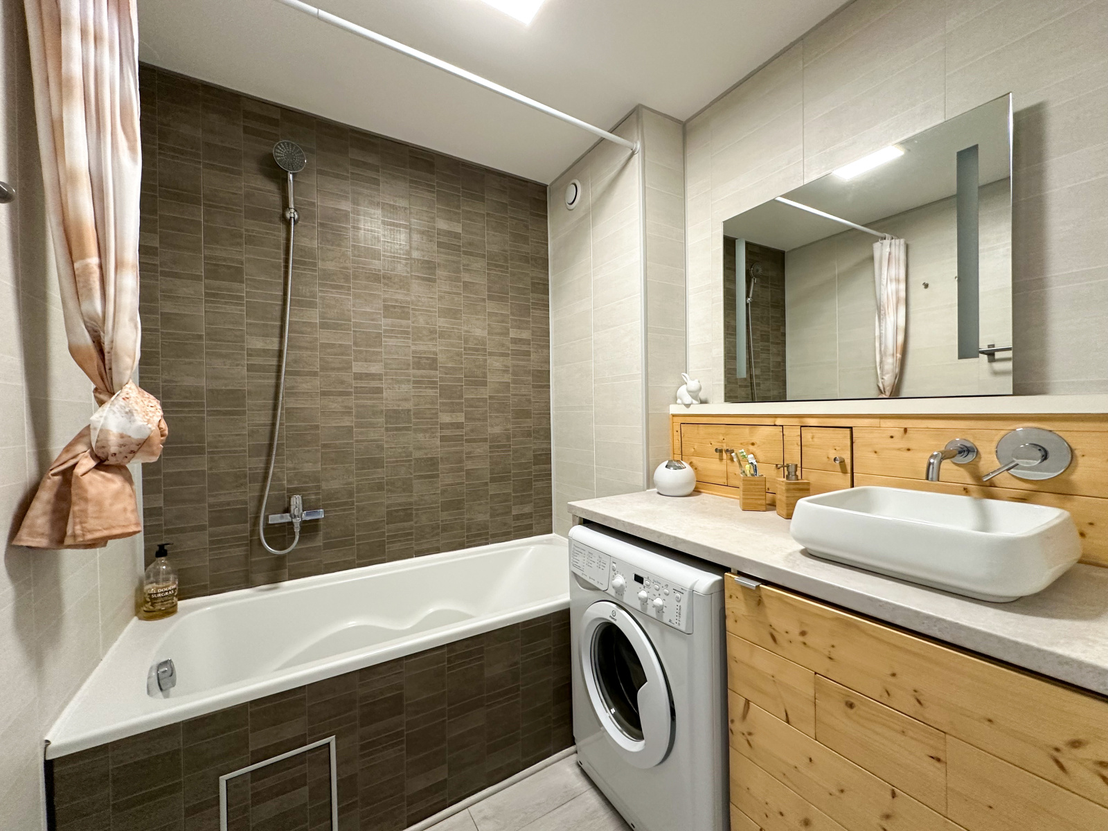 Baignoire, évier simple vasque. VMC. Eclairage miroir HS