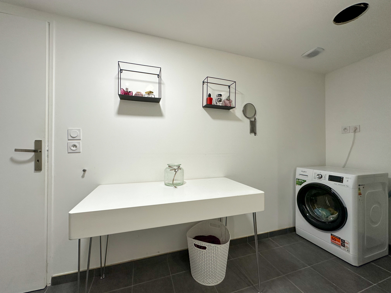 Véritable atout de cette maison, le niveau inférieur offre de multiples possibilités. Une grande salle polyvalente devient le terrain d’expression des petits comme des grands. Une salle d’eau avec douche, WC, simple vasque et espace buanderie facilite le quotidien. Deux celliers généreux permettent de tout organiser avec efficacité, et le garage de 28m², aménagé et isolé, complète cet espace avec fonctionnalité.