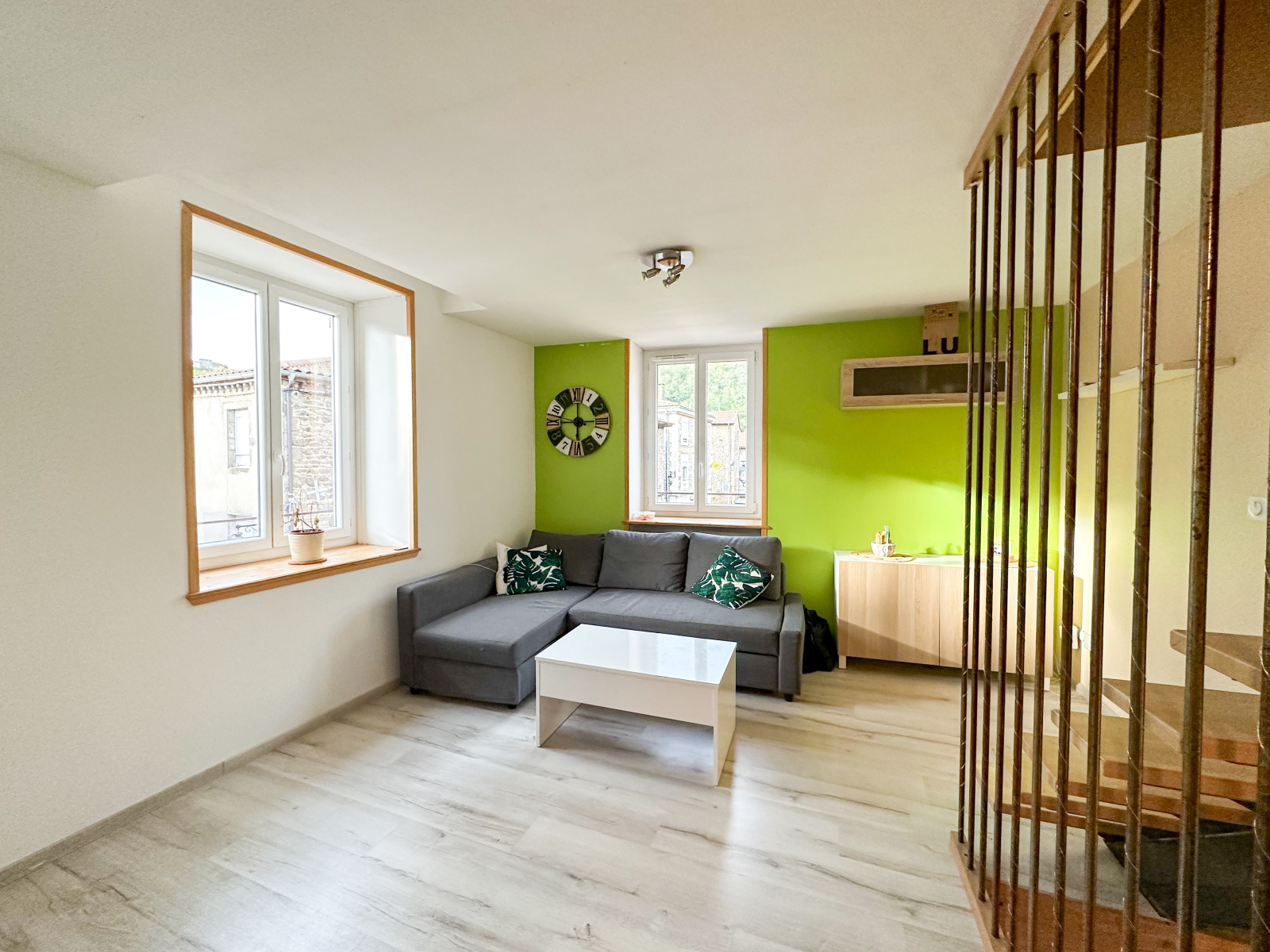 Au second niveau un salon, un wc, une salle d’eau (douche, vmc, 1 vasque, buanderie, fenêtre).