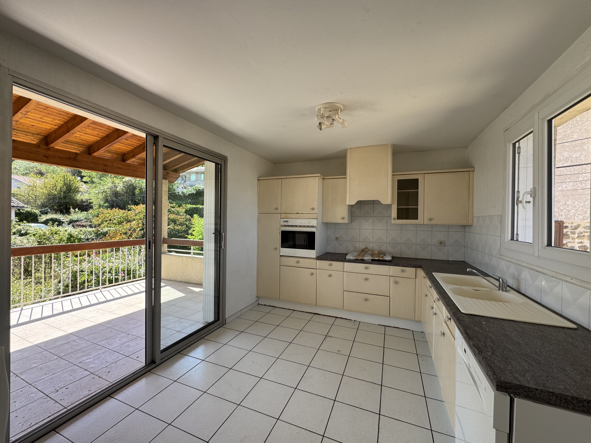 Une cuisine séparée de 14,95 m² avec un accès direct à une terrasse couverte de 18 m², idéale pour vos repas en extérieur.