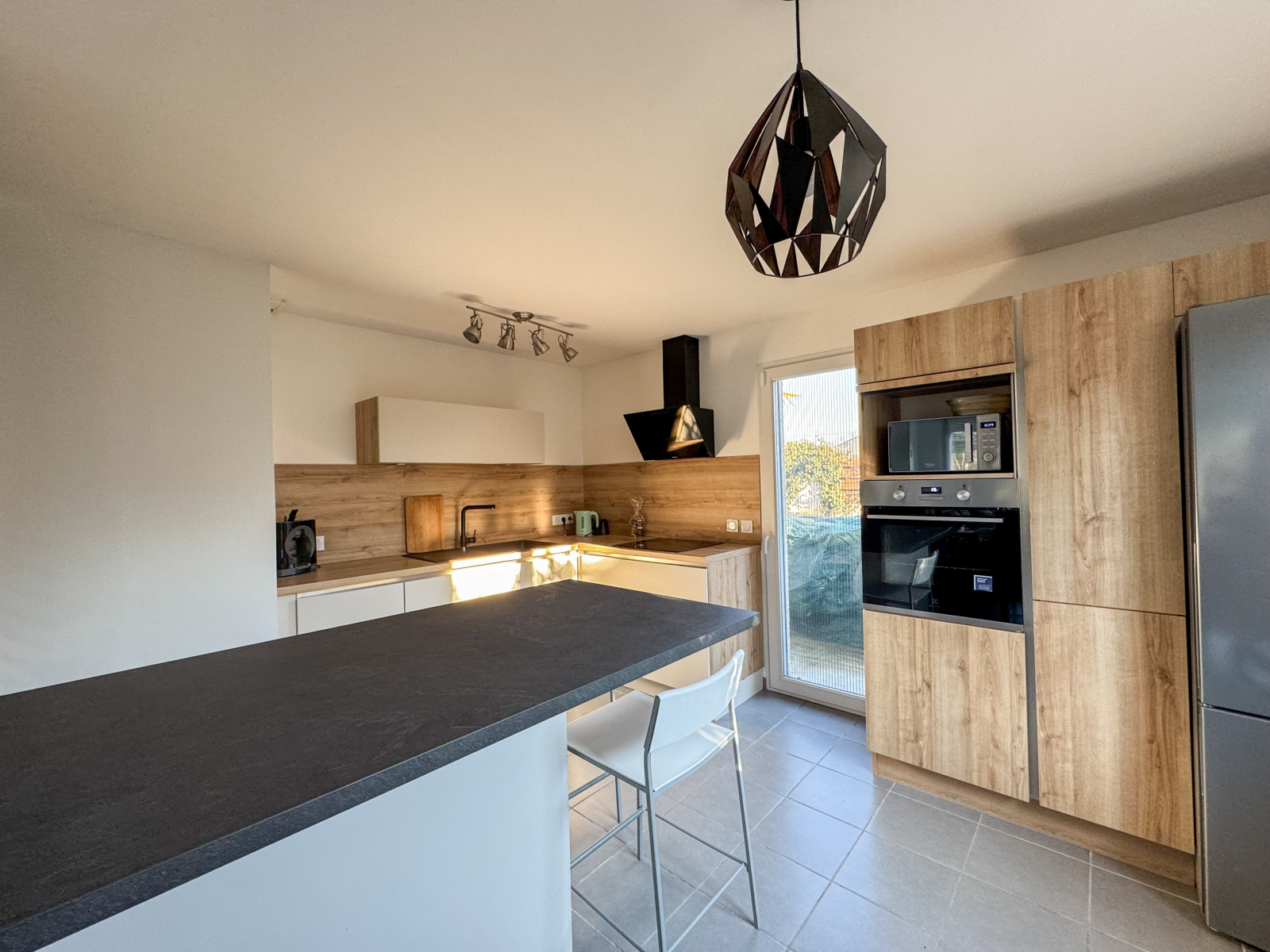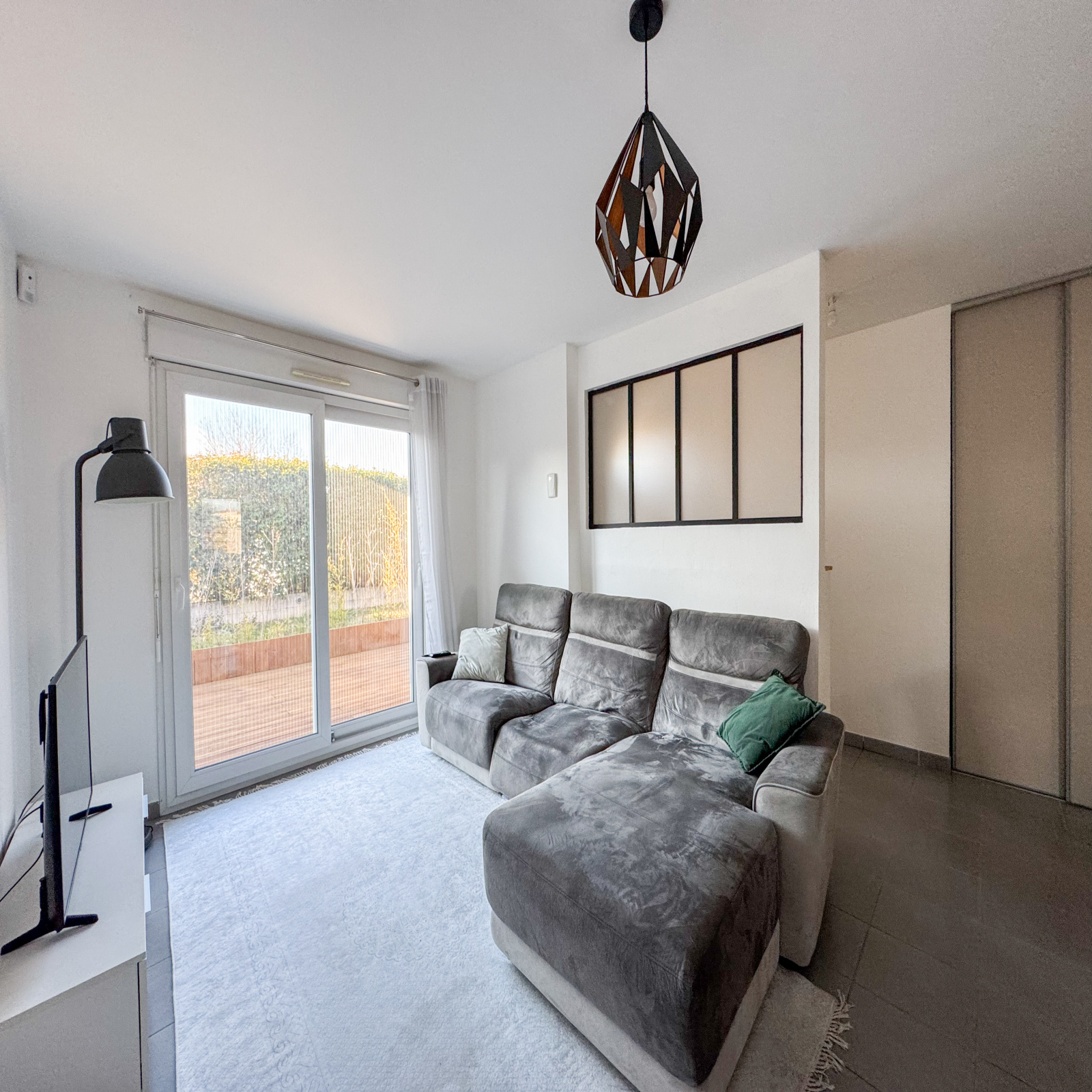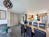 Dès l'entrée, vous serez accueilli(e) par un hall équipé d’un placard intégré, pratique pour vos rangements. La cuisine équipée, entièrement refaite en 2024, allie modernité et praticité et s’ouvre sur un salon-séjour lumineux pour un total de 33 m², doté d’un accès direct à une terrasse en bois de 17,65 m², parfaite pour vos repas en extérieur.