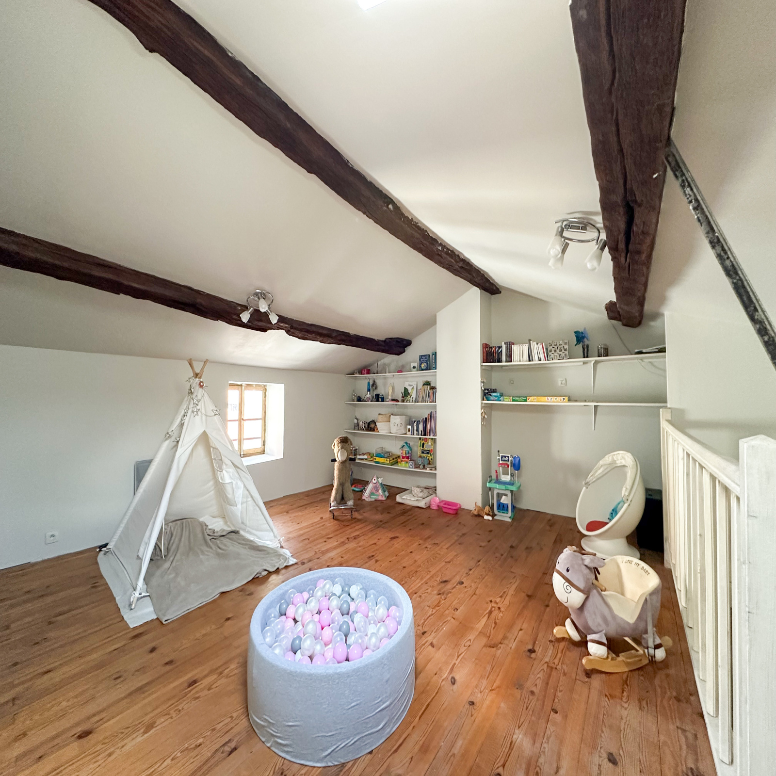 Le deuxième étage offre une mezzanine de 26m², parfaite pour un bureau ou un coin jeux, et une chambre supplémentaire de 27 m², également climatisée.