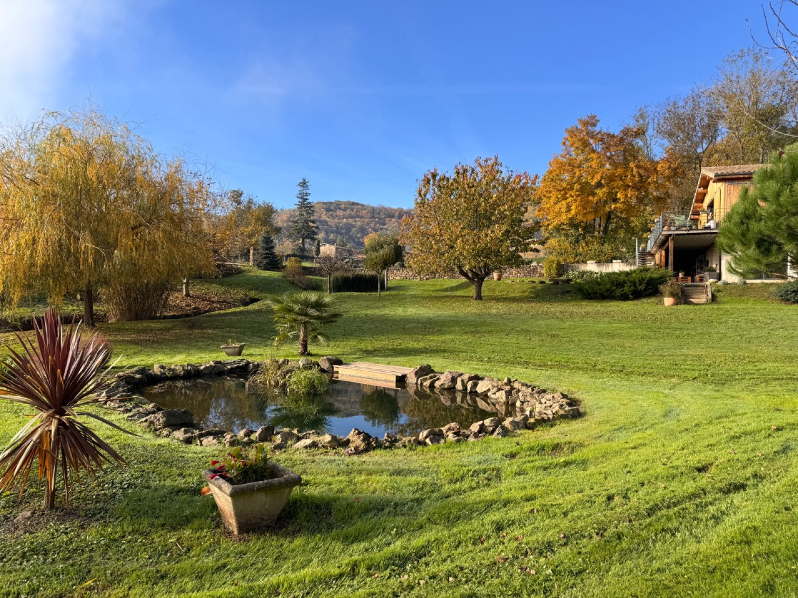 Implantée sur un terrain arboré de 3 142 m², cette propriété offre un véritable havre de paix : arbres fruitiers, essences d’ornement, bassin d’agrément et ruisseau s’y côtoient dans une ambiance apaisante.
