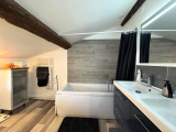 A l'étage, trois belles chambres comprises entre 13,4 et 17,1 m2 de surface au sol, soit 6 et 8,1 m2 en Carrez, une salle de bains et un WC.