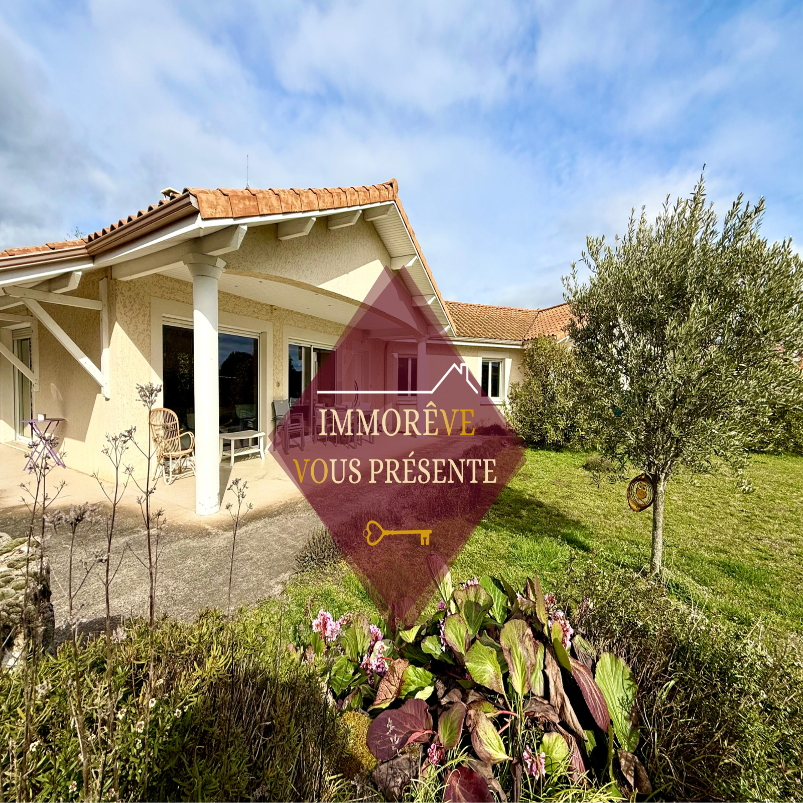IMMORÊVE vous présente cette belle maison de plain-pied, construite en 2004, qui combine espace, confort et prestations de qualité. Située sur une grande parcelle arborée de 1 448m², dans un environnement agréable et proche du centre du village, elle répond parfaitement aux attentes d’une famille en quête de sérénité et de modernité.