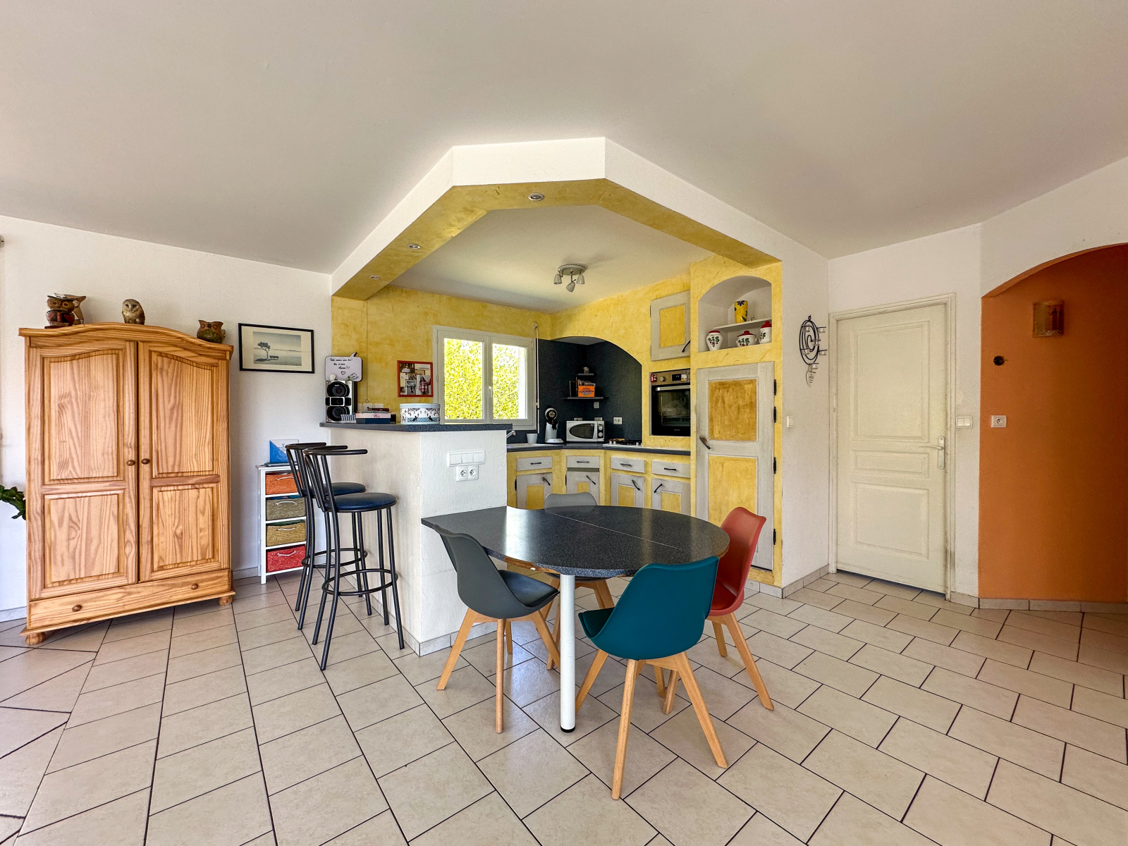 Dès l’entrée, le ton est donné : la maison séduit par ses volumes généreux et sa luminosité. Le cœur du logement bat dans le vaste séjour de plus de 70m², baigné de lumière naturelle, où le salon et la salle à manger se prolongent harmonieusement vers une cuisine ouverte et équipée. Un lieu pensé pour vivre et recevoir, sans cloisonner.