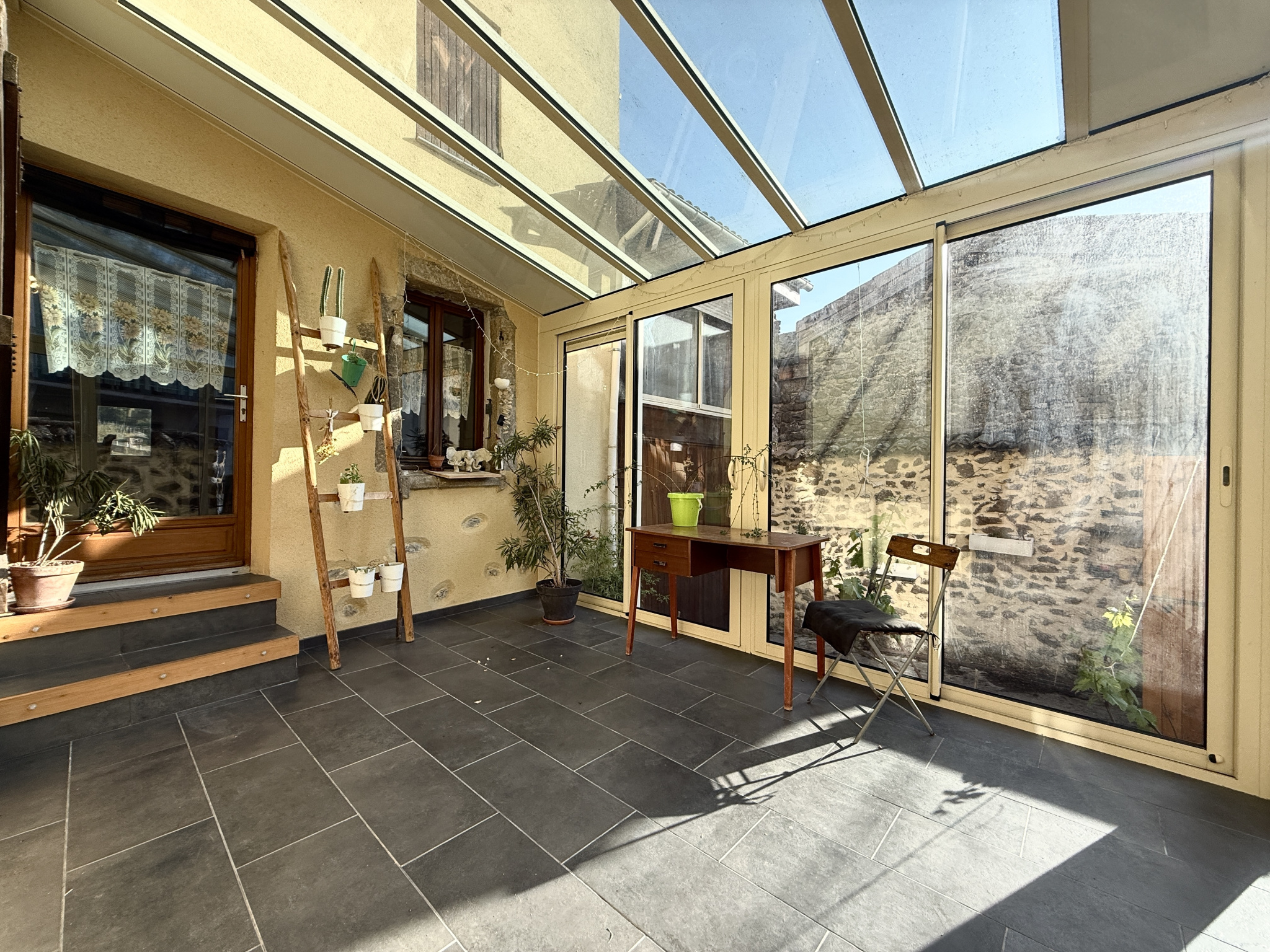 Le volume habitable déploie une surface d'environ 142 m2 au sol et vous accueille par une véranda idéale pour profiter des mi-saisons, d'environ12,20 m2 et offre un accès à une cuisine s'ouvrant à une belles pièce de vie profitant d'un poêle traditionnel.