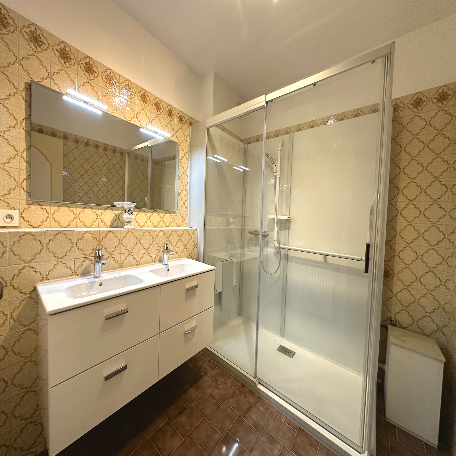 Un WC séparé et une salle d'eau d'environ 5.5m2 viennent compléter ce bien, ainsi qu'un cellier-dressing. Côté nuit, 2 chambres avec parquet au sol comprises entre 10.5 et 11m2.