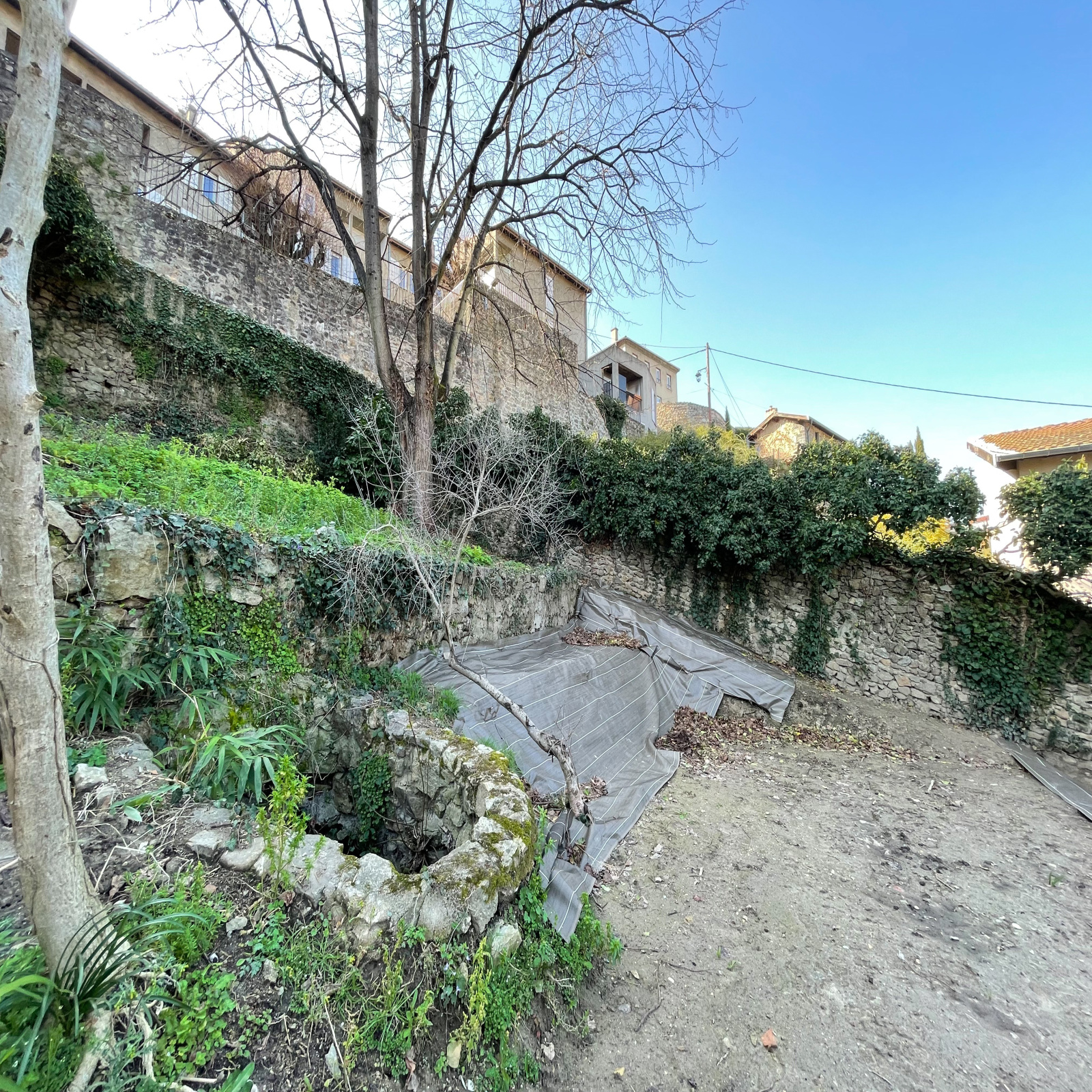 À l'extérieur, un jardin avec terrasses, dont une couverte de 6,74 m² et deux autres de 7,5 m² et 30 m², invitent à la relaxation en plein air, avec en prime une charmante source ajoutant une touche de tranquillité.