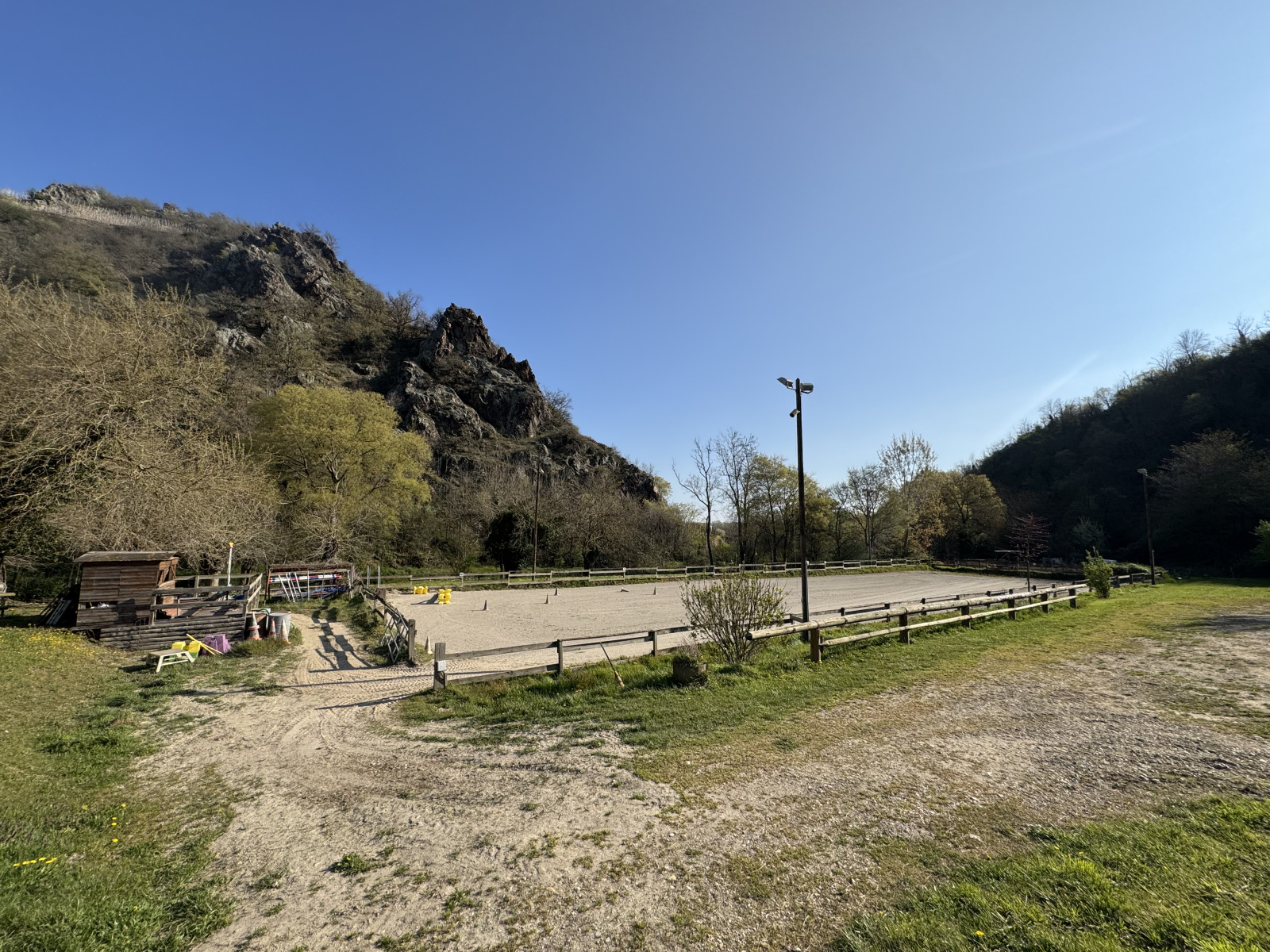 une carrière éclairée de 66 x 20 m, créée en 2011, idéale pour le travail et l’entraînement.