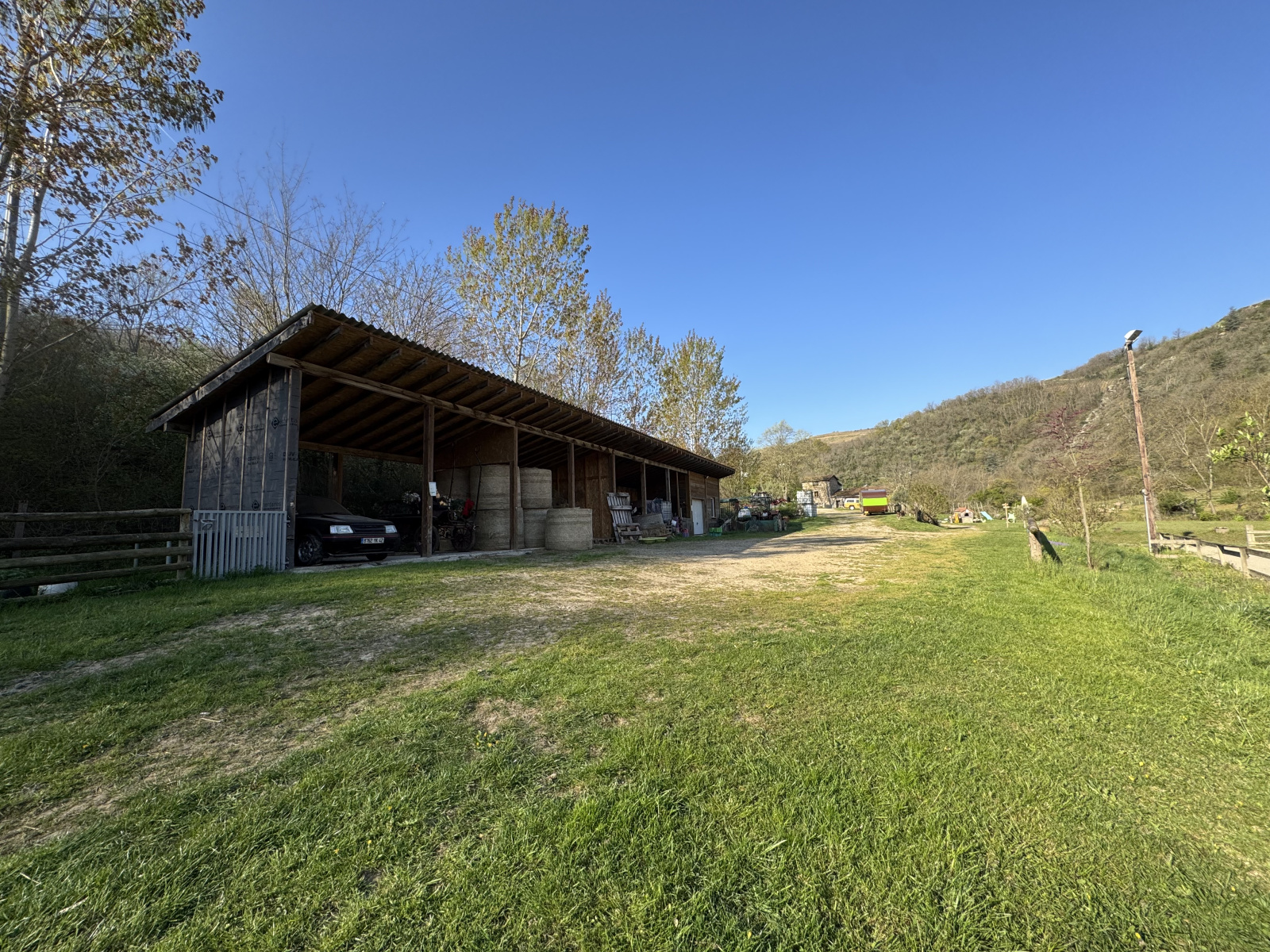 douches, barres d’attache, sellerie, hangar à foin,